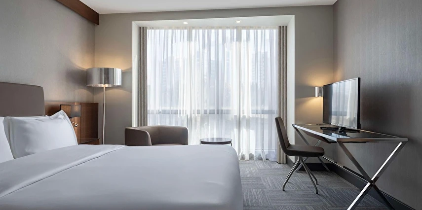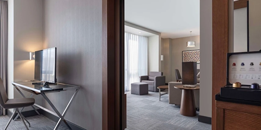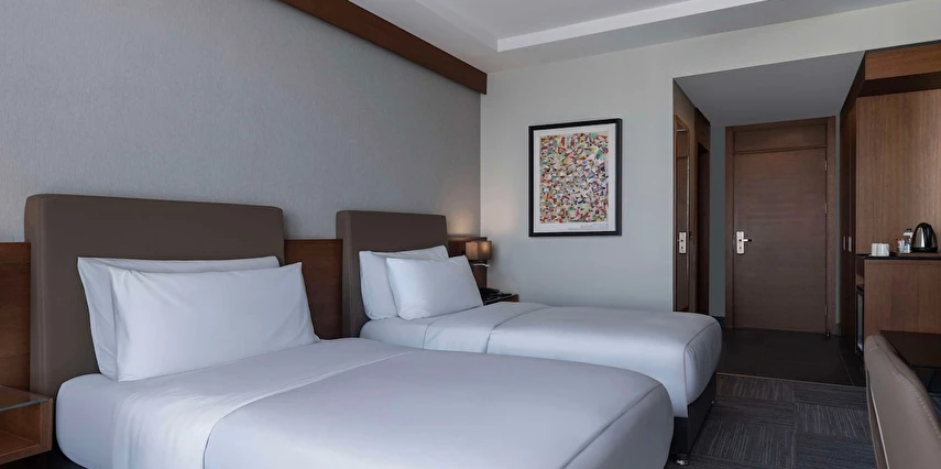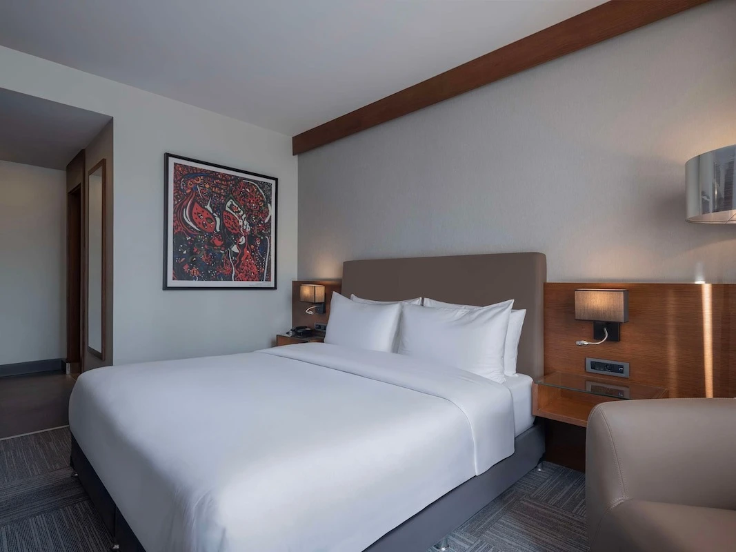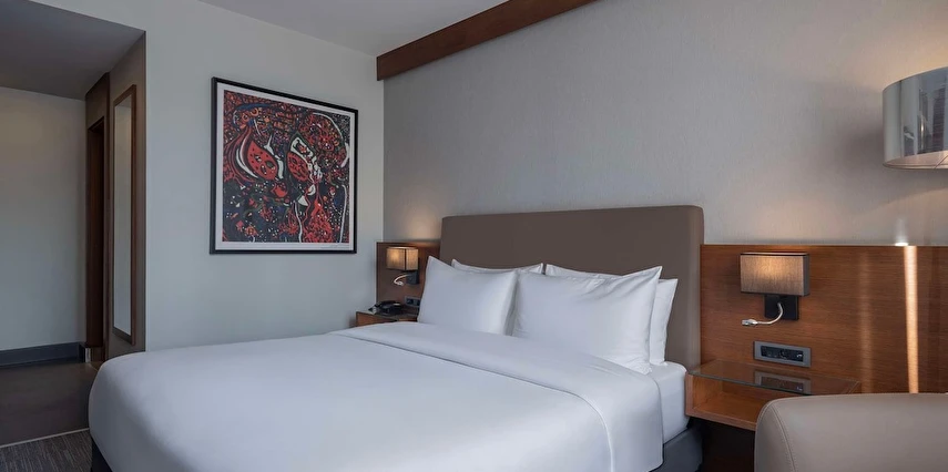 Zarif detaylarla tasarlanan modern odalar, konforlu yatakları ve fonksiyonel yaşam alanlarıyla keyifli bir konaklama deneyimi sunar.