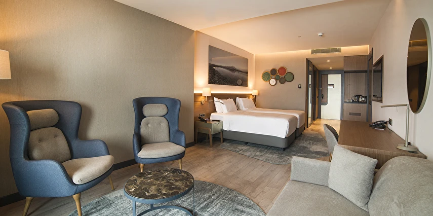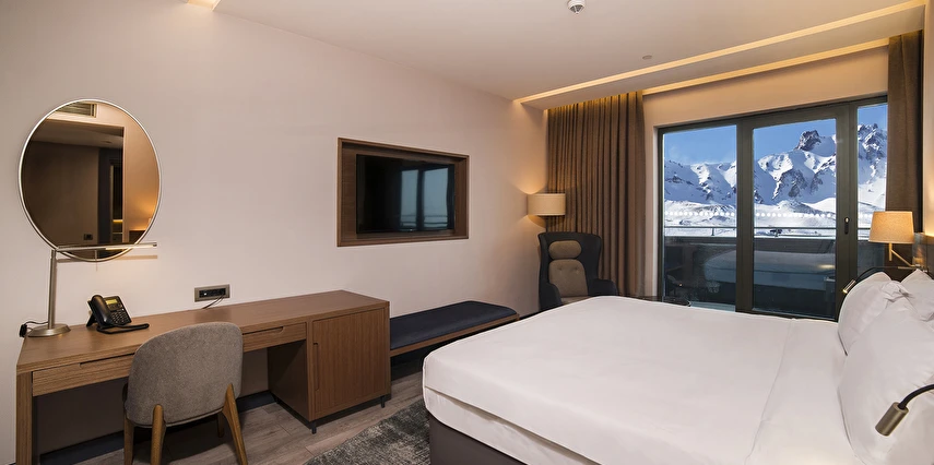 Radisson Blu Hotel, Mount Erciyes ve Radisson Blu Hotel, Mount Erciyes Lake Side olarak iki ayrı binadan oluşan otelimiz birbirine yürüme mesafesinde olup, Mount Erciyes Lake Side otel bölümünde konaklayan misafirlerimiz ana otel binasında olan tüm olanak ve imkanlardan faydalanabilmekte, günün her saati ana binadaki otelimize geçmek için ring araçlarımızı kullanabilmektedir. İster göl kenarındaki otelimizden oda ayırtabilir isterseniz dağ manzaralı odalarımızda konaklayabilirsiniz. Farklı oda konseptlerimizle sizleri bekliyoruz.