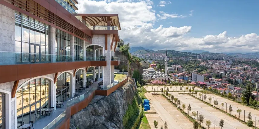 Radisson Blu Hotel, Trabzon, antik çaglardan beri dinsel olarak önemli bir bölge olan hayat dolu Boztepe’nin kalbinde bulunuyor. Sehrin ve limanin nefes kesen manzaralari için, otelden sadece 30 metre mesafede olan Boztepe Çay Bahçesi’ni ziyaret edin. Trabzon Havalimani’na sadece 6,8 km mesafedeki otelimizin magazalar, restoranlar, kafeler ve kültür mekanlarina sahip sehir merkezine uzakligi ise 1,9 km.