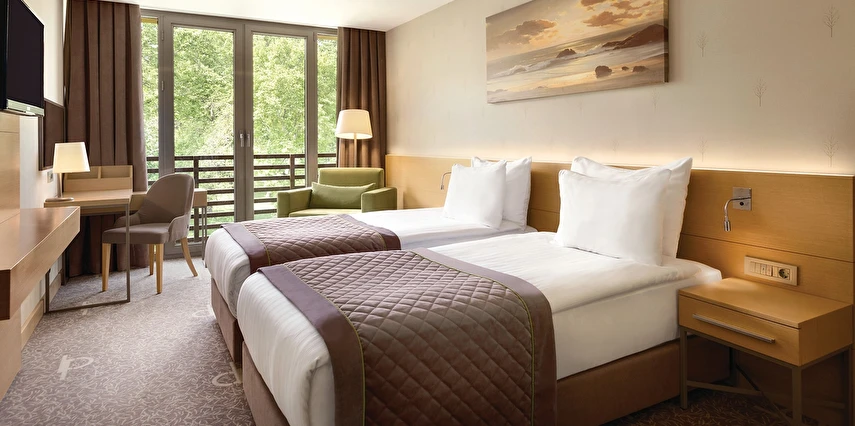 Kapalı termal havuzu, spa & wellness hizmetleri (sauna, buhar, jakuzi, masaj), fitness salonu, ücretsiz Wi-Fi ve otopark imkanlarıyla misafirlerine hem rahatlama hem de şehrin enerjisini yaşama olanağı sunar.