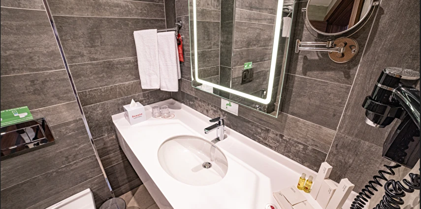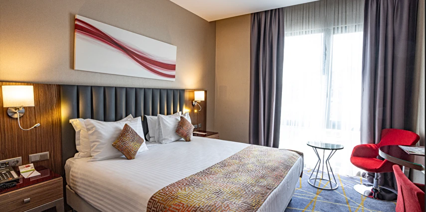 Daha Fazla GösterRamada İstanbul Alibeyköy, modern tasarımı ve zengin hizmetleri ile Eyüp’te konumlanıyor. Elverişli bir konuma sahip tesis, şehrin önemli alışveriş bölgelerine, iş merkezlerine ve tarihi şehir bölgesindeki önemli turistik noktalara yakın mesafede bulunuyor.