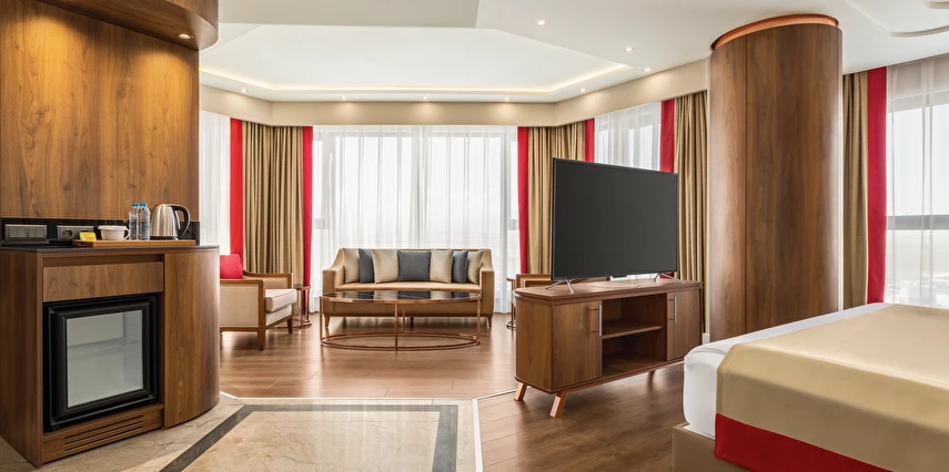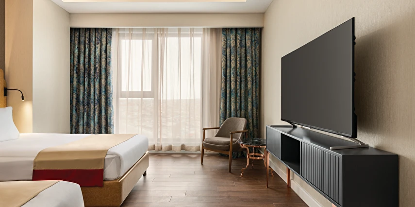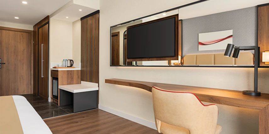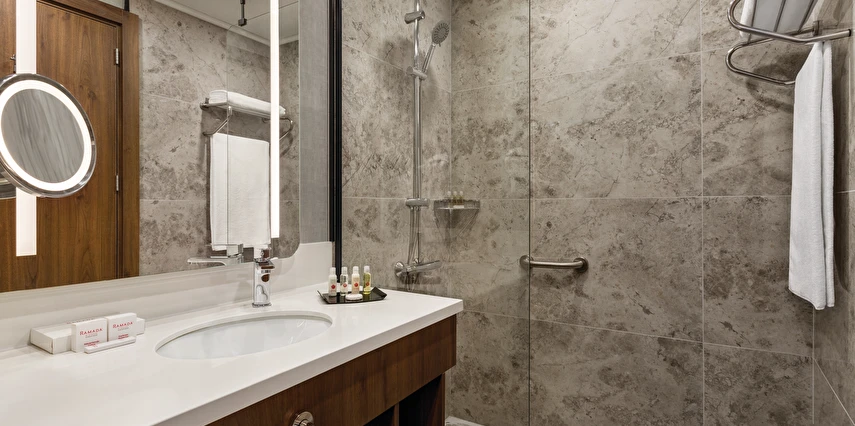Şık ve fonksiyonel olarak tasarlanmış odalarında; konforlu yataklar, çalışma alanı, klima, ücretsiz yüksek hızlı Wi-Fi, LCD TV ve modern banyo olanakları bulunmaktadır. Güne zengin kahvaltı seçenekleriyle keyifli bir başlangıç yapabilir, gün boyu sunulan lezzetlerle Ramada kalitesini hissedebilirsiniz.
