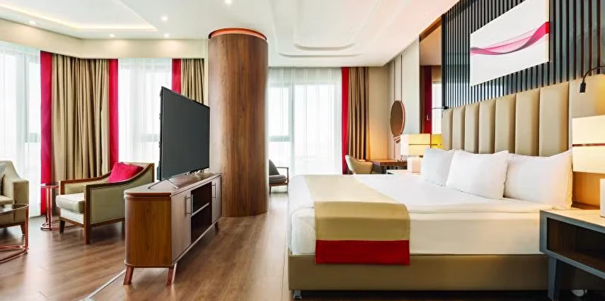 Daha Fazla GösterKonya’nın Karapınar ilçesinde modern mimarisi ve Ramada by Wyndham ayrıcalıklarıyla hizmet veren Ramada by Wyndham Karapınar, hem iş hem de turistik konaklamalar için konforlu ve prestijli bir deneyim sunuyor. Şehir merkezine ve ana ulaşım noktalarına yakın konumuyla misafirlerine zaman kazandıran tesis, rahatlığı ve kaliteyi bir arada arayanlar için ideal bir tercihtir.