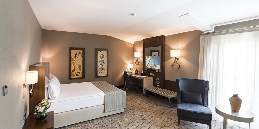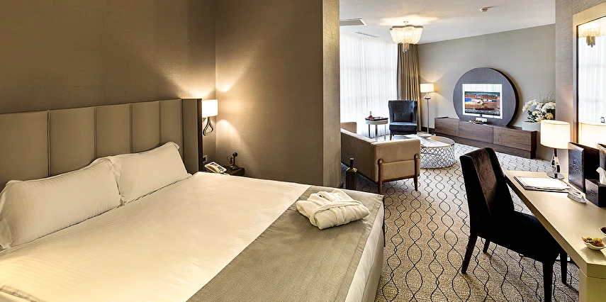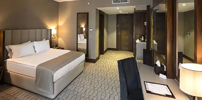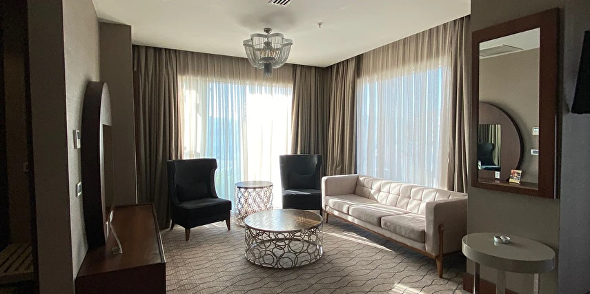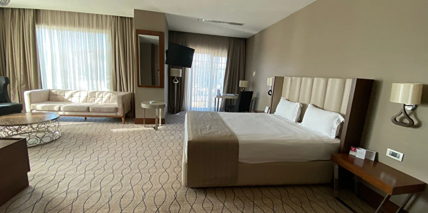 Daha Fazla GösterUluslararası Ramada Oteller Zinciri'nin, 5 yıldızlı otel standartları ile tasarlanmış olan Ramada By Wyndham Sakarya Hotel, sizleri ileri teknoloji, konfor ve estetik ile buluşturuyor. Ramada Dolce restaurantında birçok lezzeti tadabileceğiniz Ramada By Wyndham Sakarya Hotel ; 8 yaşından büyük misafirlerimiz için Bay & Bayan ayrı kapalı havuz imkanı ile hem rahatlamanızı hem de eğlenmenizi sağlıyor. Üstün teknoloji ile döşenmiş Business Center iş hayatınıza da konfor ve rahatlık sunmaktadır.