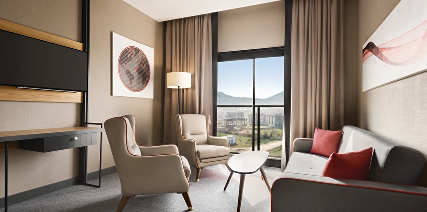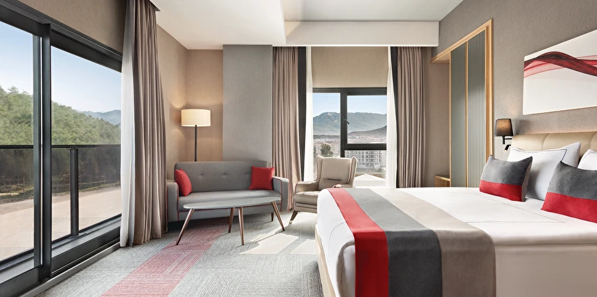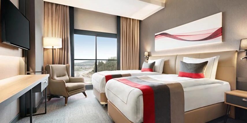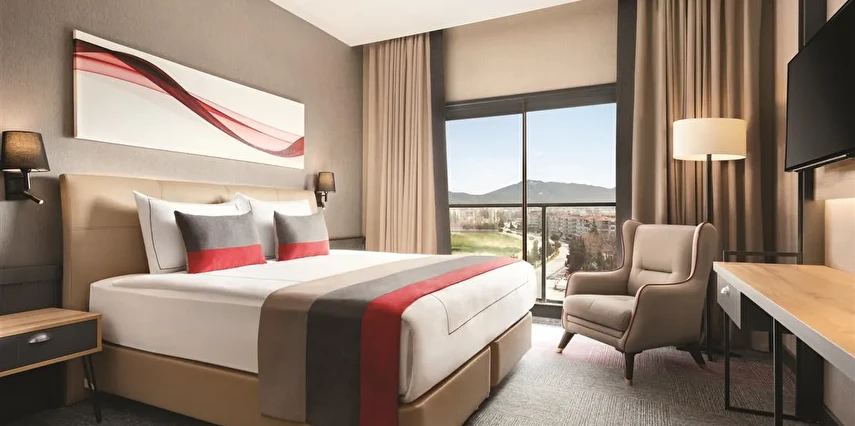 Daha Fazla GösterEge’nin güzel ilçesi Tire’de, modern konforu ve kaliteli hizmet anlayışını bir araya getiren Ramada by Wyndham Tire, hem iş seyahatleriniz hem de dinlendirici tatilleriniz için mükemmel bir konaklama adresidir. Tire Organize Sanayi Bölgesi’ne yalnızca birkaç kilometre uzaklıkta yer alan tesis, birçok sanayi noktasına yakınlığıyla iş seyahatlerinde avantaj sağlar. Şehir merkezine ve çevre ilçelere de kolay erişim sunar.