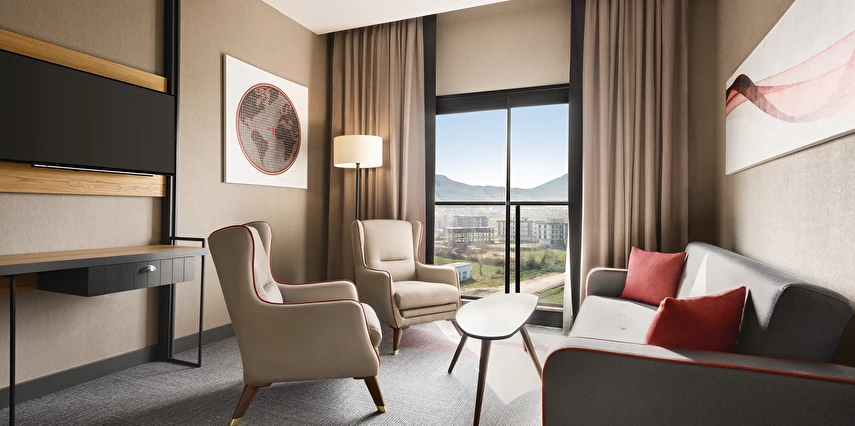 Toplam 108 modern ve konforlu odasıyla hizmet veren otel; standart odalar, geniş corner suitler ve özel suite seçenekleriyle her misafirin ihtiyaçlarına cevap verir. Tüm odalar ferah, şık dekore edilmiş olup klima, ücretsiz Wi-Fi, flat ekran TV ve daha birçok konfor özelliğiyle donatılmıştır.