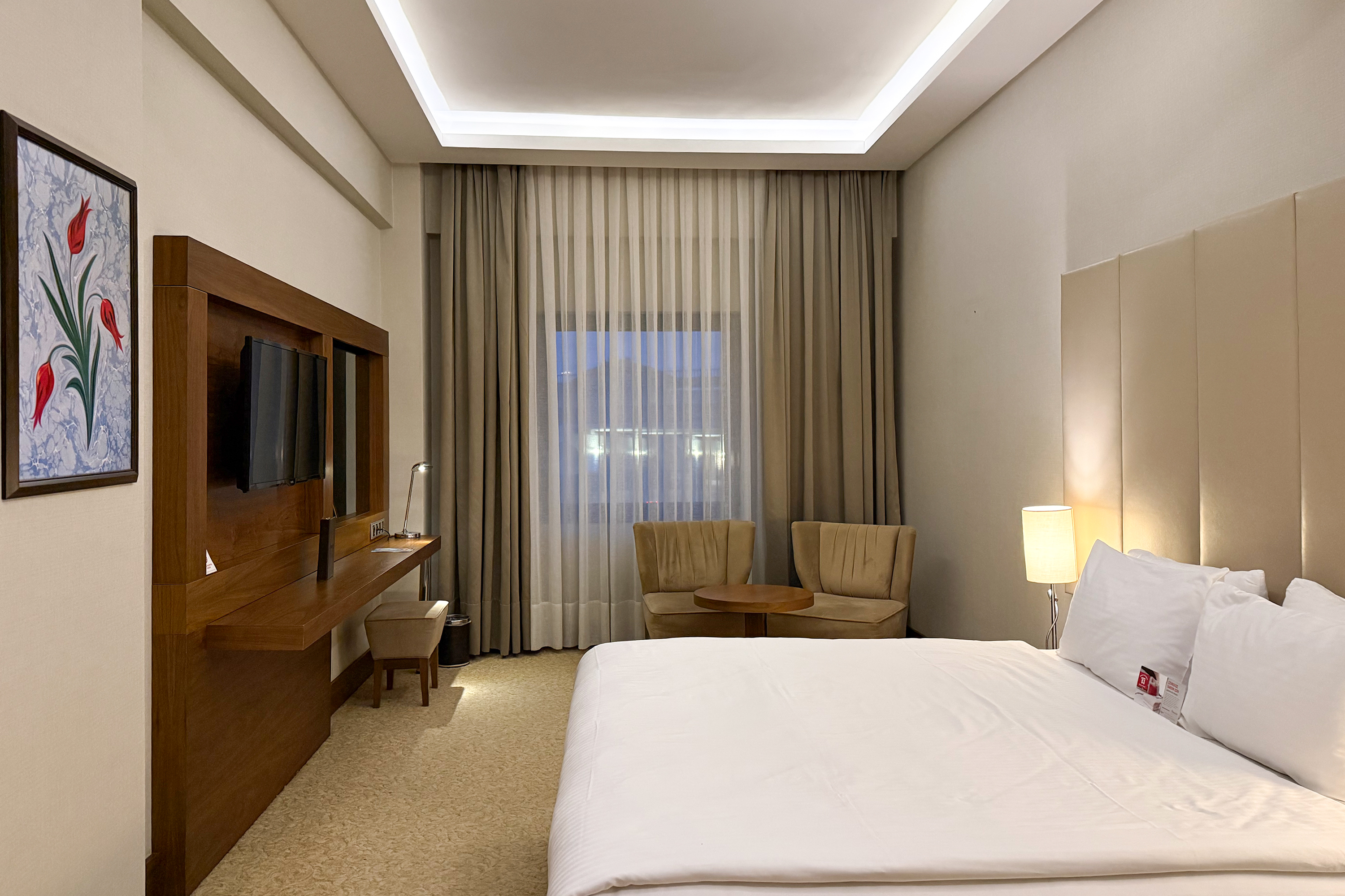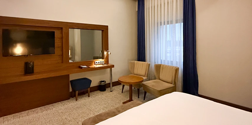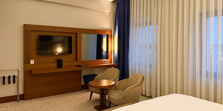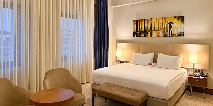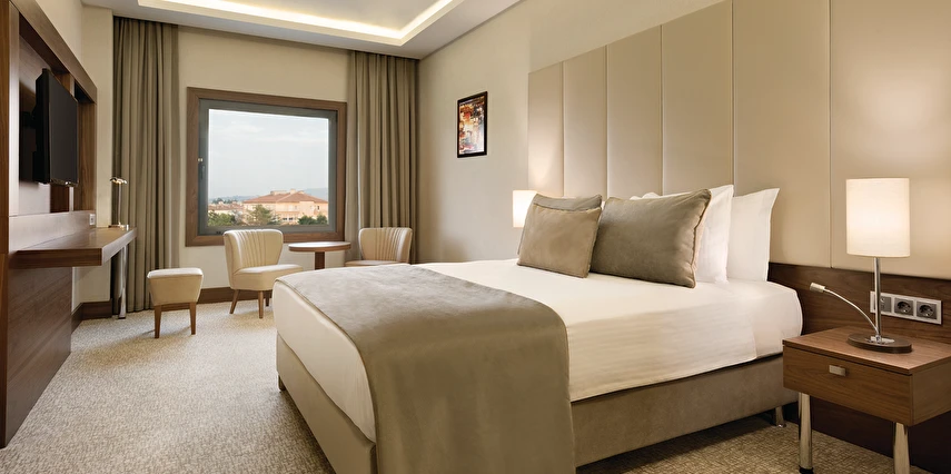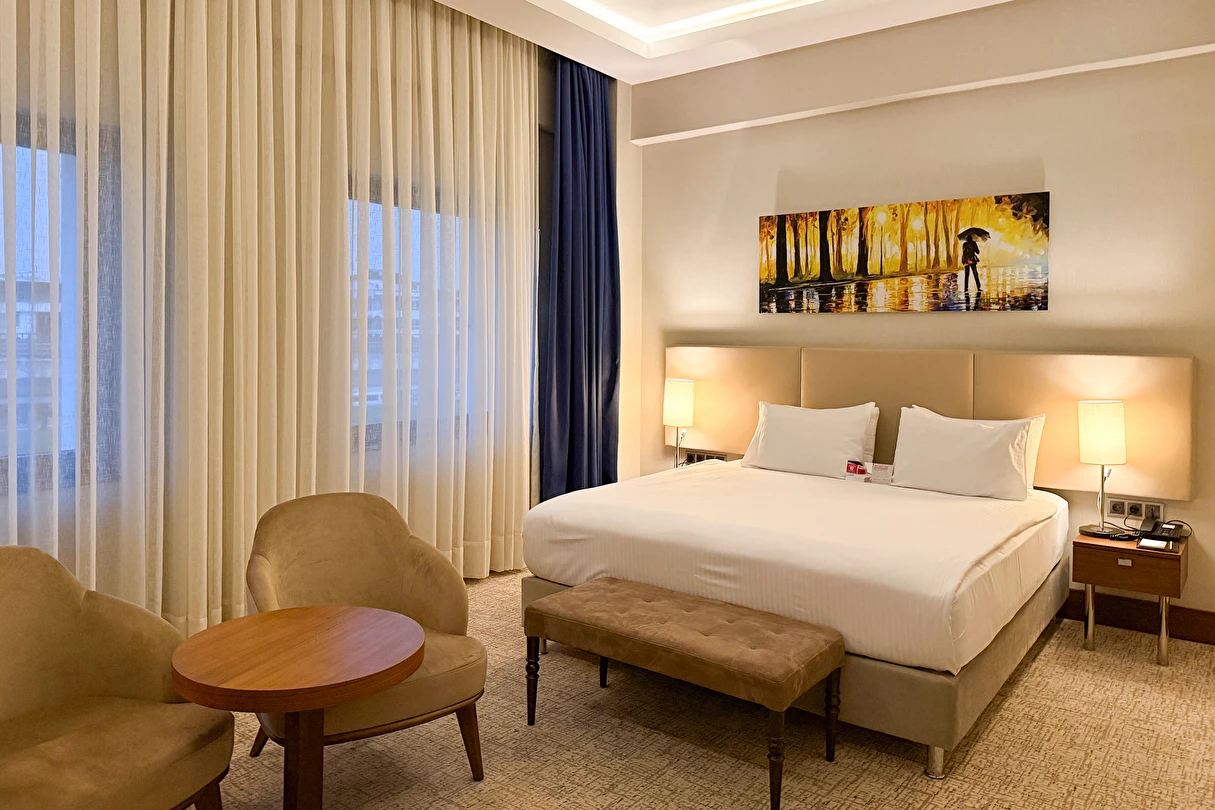 Daha Fazla GösterYalova'nın merkezinde ve Marmara Denizi'nin kıyısında yer alan Ramada Yalova otelimiz, Yalova Üniversitesi kampüsü ile Setur Yalova Marina'nın yanı başında yer alır. İş amaçlı seyahat eden konuklar Aksa Enerji, Eczacıbaşı İpek Kağıt Fabrikası, Altınova Tersane Girişimcileri veya Beşiktaş, Cemre ya da Gemak Tersanelerine kolaylıkla ulaşabilirler. İstanbul Sabiha Gökçen Havalimanı'na (SAW) uçarak ve İzmit Körfezi üzerindeki Osman Gazi Köprüsü'nü geçerek bölgeye ulaşabilir ve buradan ayrılabilirsiniz. Yalova'nın merkezinde ve Marmara Denizi'nin kıyısında yer alan Ramada Yalova otelimiz, Yalova Üniversitesi kampüsü ile Setur Yalova Marina'nın yanı başında yer alır. İş amaçlı seyahat eden konuklar Aksa Enerji, Eczacıbaşı İpek Kağıt Fabrikası, Altınova Tersane Girişimcileri veya Beşiktaş, Cemre ya da Gemak Tersanelerine kolaylıkla ulaşabilirler. İstanbul Sabiha Gökçen Havalimanı'na (SAW) uçarak ve İzmit Körfezi üzerindeki Osman Gazi Köprüsü'nü geçerek bölgeye ulaşabilir ve buradan ayrılabilirsiniz. Şehir merkezine yakın konumda bulunan Ramada Hotel Yalova, iş ve turistik amaçlı konaklamalar için ideal bir alternatif sunuyor. Misafirlerin keyifli vakit geçirmesi için pek çok olanağın sunulduğu tesis, Yalova Otogarı’na 750 m mesafede bulunuyor.