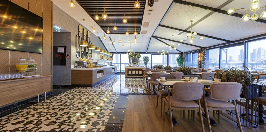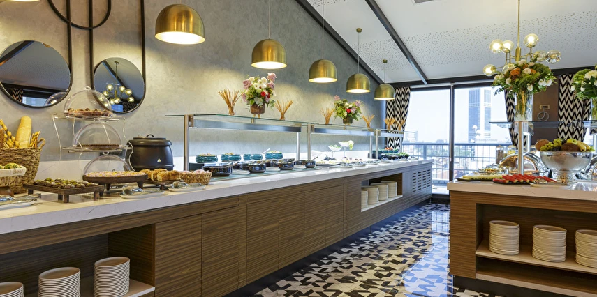 Teras katımızda yer alan Flame Restaurant, şehrin koşuşturmacasında keyifli bir mola vermek için tasarlanmış sıcak atmosferi ve eşsiz panoramik şehir manzarasıyla, siz değerli misafirlerimize muhteşem bir deneyim kazandıracaktır. Tutkulu ve profesyonel şeflerin hazırladığı, Türk ve Dünya mutfaklarından çeşitli lezzetler eşliğinde, manzaranın keyfini sürebilirsiniz.
