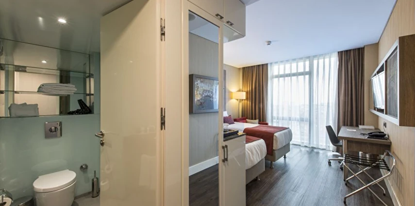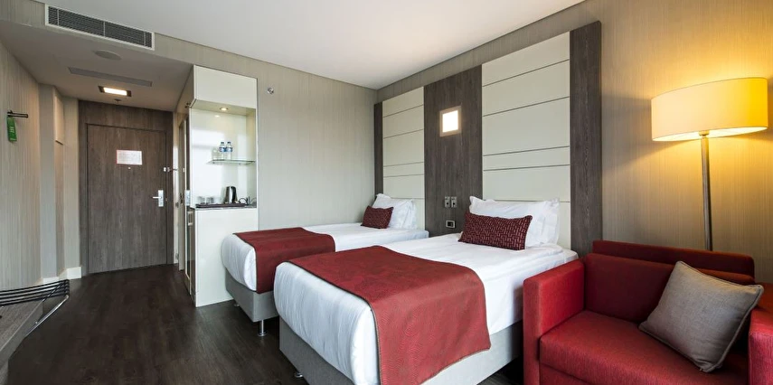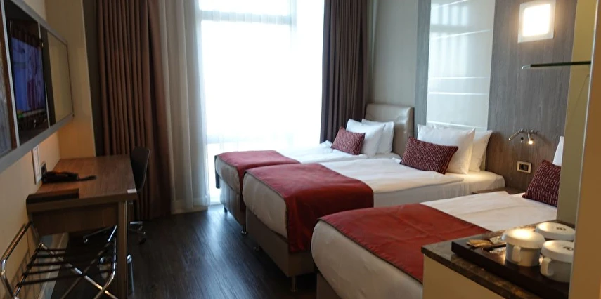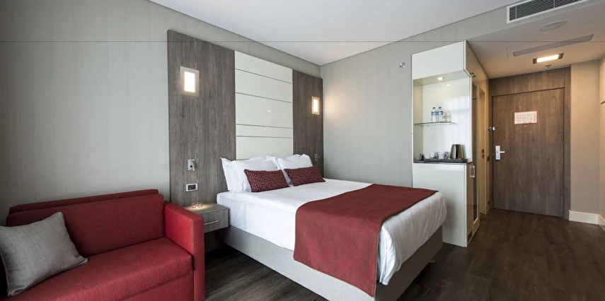 Konforlu odalarımız; LED TV, klima, minibar, çay-kahve seti ve ses-ısı izolasyonu gibi konaklama standartlarını karşılıyor. Aileler için bağlantılı oda seçeneği de mevcut.