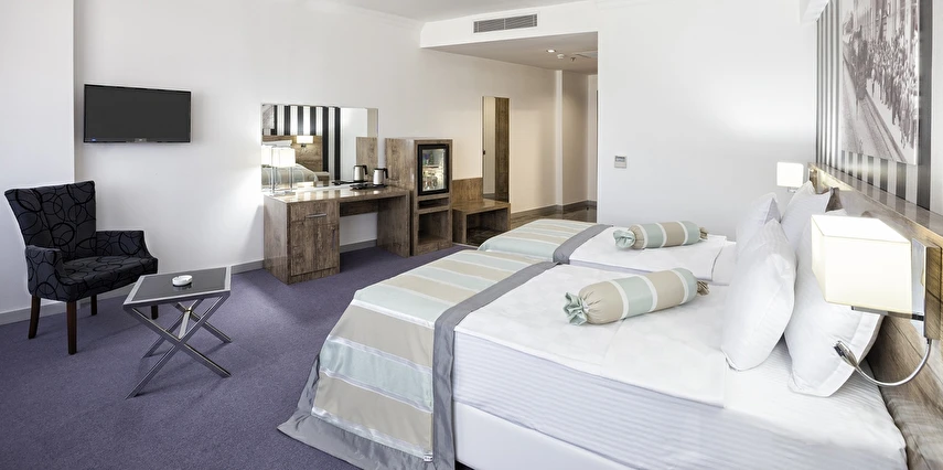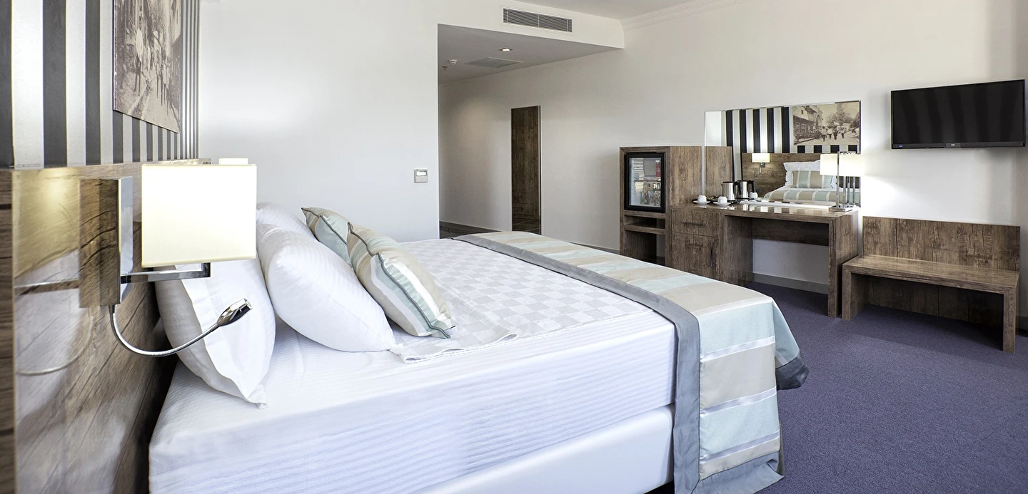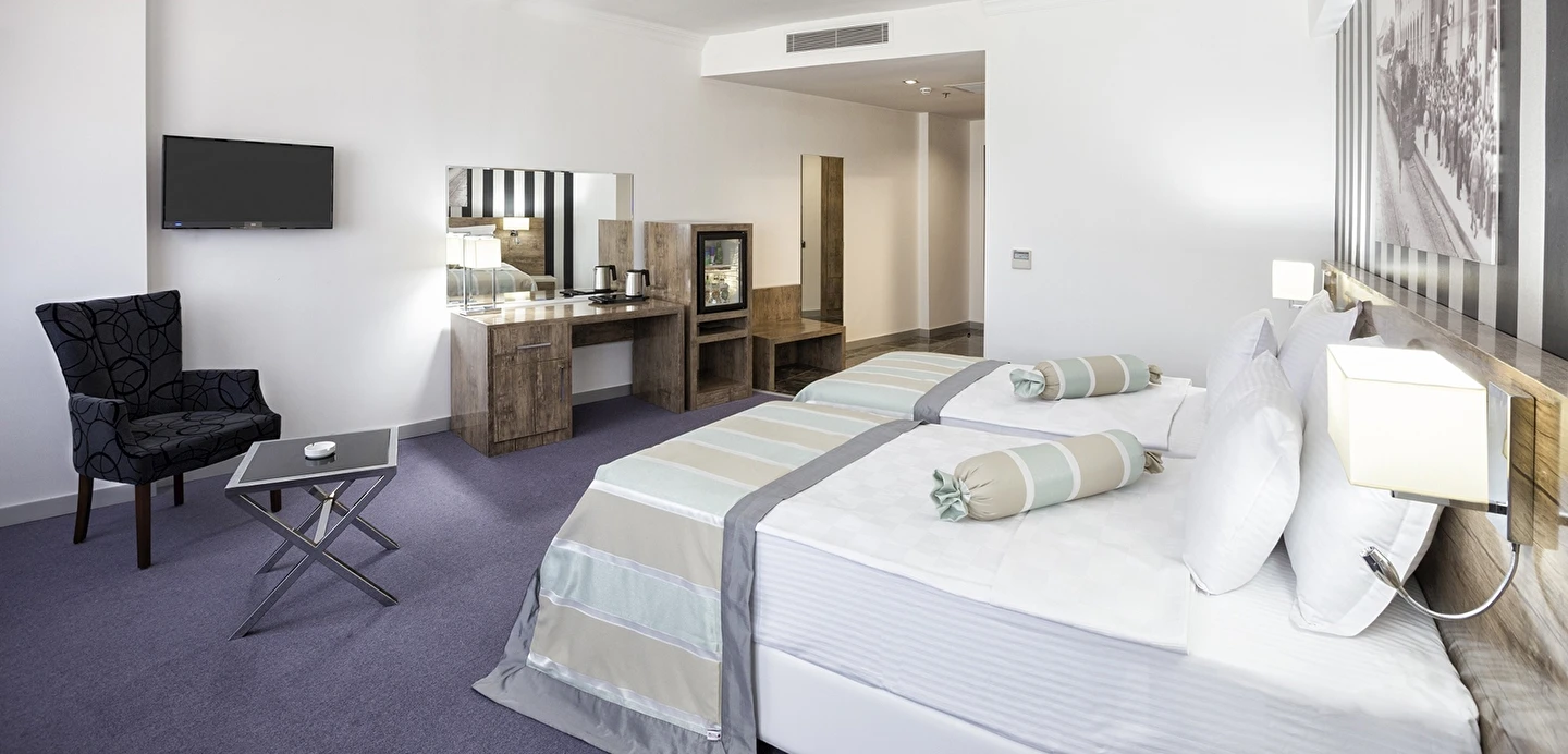 Otelin ferah ve modern şekilde dekore edilmiş oda ve süitleri; konforlu yataklar, klima, ücretsiz Wi-Fi, düz ekran TV, çalışma alanı ve özel banyo gibi olanaklarla donatılmıştır. Uzun süreli konaklamalar için uygun süit seçenekleri, aileler ve iş seyahatleri için ekstra konfor sağlar.