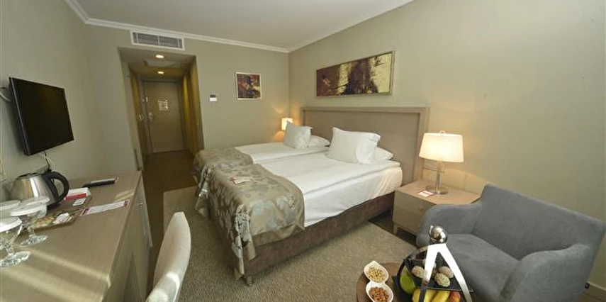 Çeşitli olanaklarımız ve müşteri odaklı hizmet anlayışımızla, her ziyaretinizde size en iyi deneyimi sunmayı taahhüt ediyoruz. Sizi ağırlamaktan mutluluk duyarız ve her anınızı özel kılmak için buradayız. Otelimizde Çift konaklamalarında ''Evlilik Cüzdan'' şartı bulunmaktadır.'’ Erken Giriş Taleplerinde Ek Ücret Uygulanmaktadır. Misafirlerin konforuna yönelik pek çok hizmetin sunulduğu tesiste, günün yorgunluğunu atabileceğin SPA merkezi, hareketli yaşam tarzından vazgeçemeyenler için ise donanımlı bir fitness merkezi bulunuyor.Tesisin şık ve zarif dekorasyona sahip odalarında; minibar, çay ve kahve yapma imkanı ve çalışma masası gibi olanaklar mevcut. Tesisin restoranında Türk ve dünya mutfaklarının nefis tatlarını deneyebilirsin. Kalsedon Bar’da çeşitli içecekler ve atıştırmalıklar eşliğinde güne keyifli bir mola verebilir, Vitamin Bar’ın taze meyve sularının tadına bakabilirsin. Tesis, Kahramanmaraş’ın merkezindeki mağaza, restoran ve barlarına araçla yalnızca 15 dakika mesafede konumlanıyor ‘