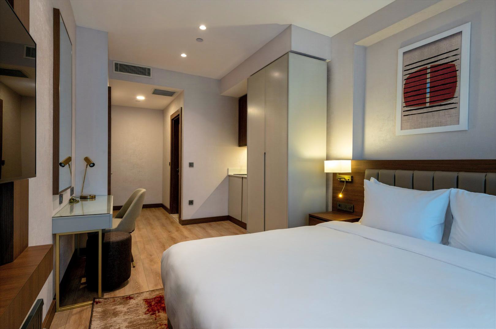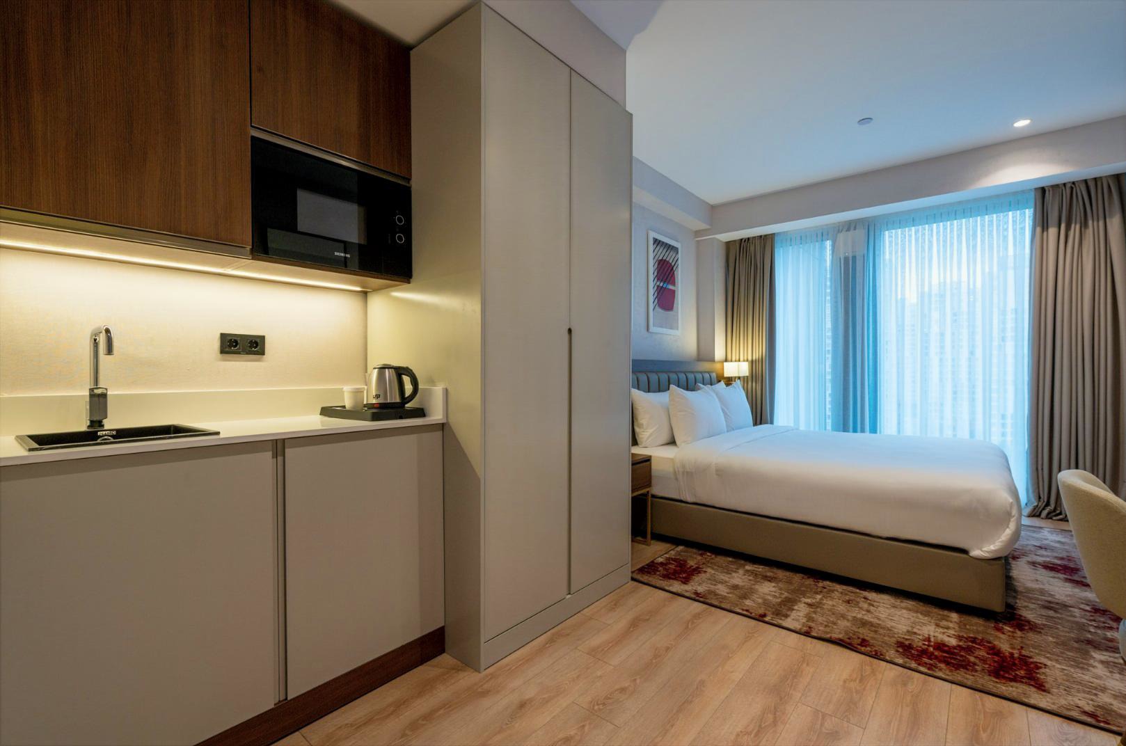 Daha Fazla GösterRamada Residences By Wyndham İstanbul Haramidere, İstanbul’un Haramidere – Esenyurt bölgesinde yer alan, modern ve konforlu rezidans odaları ile konuklarına ev rahatlığında bir konaklama deneyimi sunar. Tam donanımlı küçük mutfaklı odalar, ücretsiz yüksek hızlı Wi‑Fi ve günün her anında rahatınızı düşünen hizmet anlayışıyla hem kısa hem uzun süreli kalışlar için ideal bir adres sağlar.