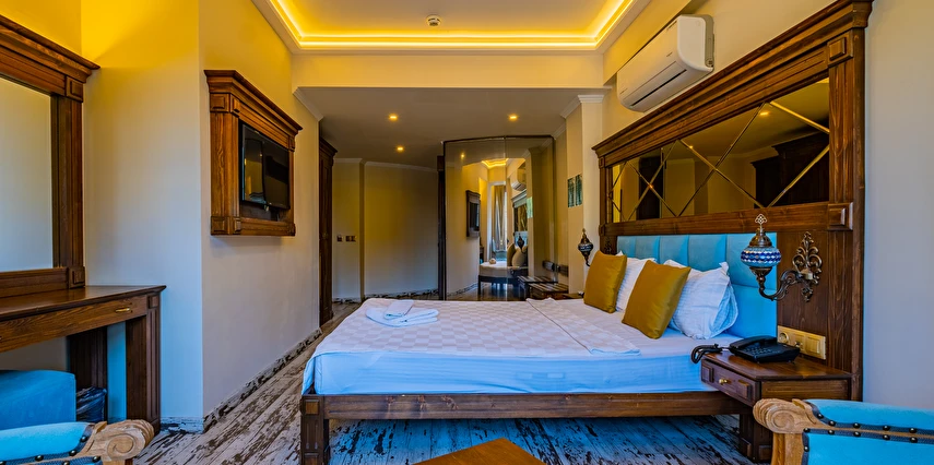 Reis Royal’de 26 adet oda bulunuyor. Bu odalar standart oda - iki kişilik, suit oda – jakuzili, corner suit ve standart - iki yataklı oda şeklinde kategorilendirilmiş bulunuyor. Odalarda klima, düz ekran LCD TV, oturma grubu ve kablosuz internet bağlantısı bulunuyor. Bazı odalarda jakuzi de konuklara sunuluyor. Tesis konuklara ücretsiz banyo malzemesi ve havlu seti temin ediyor.