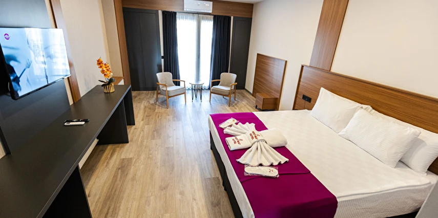 Daha Fazla GösterKonforlu Konaklama: Modern tasarıma sahip geniş odalarımız, rahat yatakları ve ihtiyacınız olan tüm olanakları ile konforlu bir konaklama deneyimi sunar.