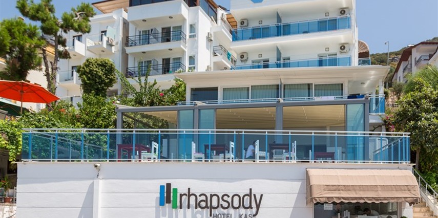 - Rhapsody Hotel Kaş; mimari dokusu ve etkileyici doğasıyla ünlü, adeta gizli kalmış beldelerimizden olan Kaş’ın en konforlu butik otellerindendir. Akdeniz’i göz alabildiğine gören mükemmel bir konuma sahip Rhapsody Hotel Kaş, mimarisi, dekorasyonu, servisi ve aktiviteleri ile sizi unutulmayacak bir serüven için Kaş’a davet ediyor. Rhapsody Hotellerinde doğanın sesini dinlerken, bütün yılın yorgunluğunu sona erdireceksiniz. Konuklarının maksimum rahatı bulması ilkesinden hareketle jakuzili odalarından zengin açık büfe kahvaltısına kadar, mutlu bir tatil için sizi hazır bekliyor. Eşsiz bir koyda ve eşsiz manzarada merkezdeki mükemmel konumuyla, adeta denize dokunuyormuş hissine kapılarak yaşayacağınız tatil için haydi Rhapsody Hotellerine.