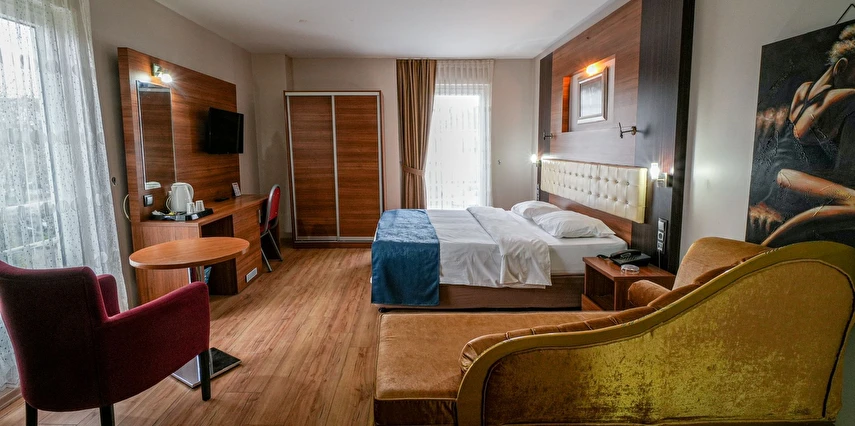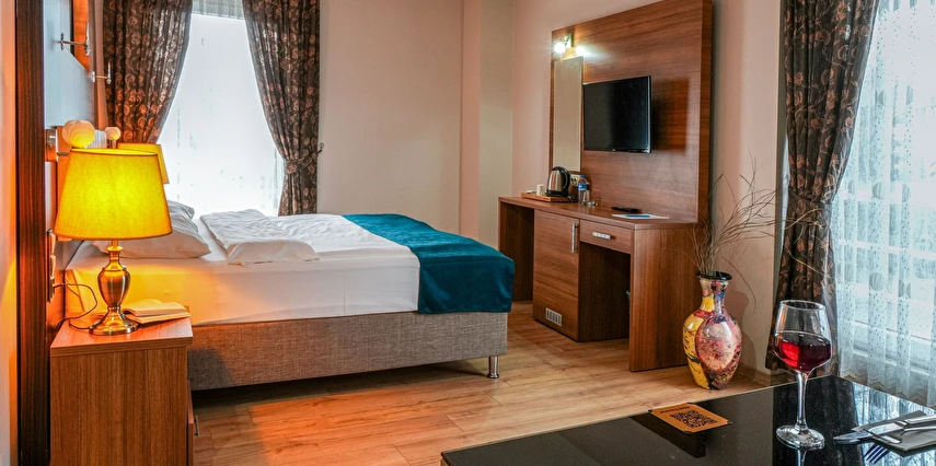 Daha Fazla GösterSakarya şehir merkezinde, modern ve şık odalarının yanı sıra huzurlu atmosferiyle öne çıkan The Riada Hotel, iş ve tatil amaçlı konaklamalar için ideal bir alternatif oluşturuyor. Tesiste Türk hamamı, sauna ve masaj gibi imkanlar sunuluyor. Misafirler saunada dinlenebilir, sağlıklı yaşam merkezindeki masajlardan birini deneyebilirler. Tesis misafirleri, sabahları açık büfe kahvaltılarını dilerlerse bahçe de yapabilir, a la carte restoranda Türk ve dünya mutfağından lezzetler deneyimleyebilirler. Tesis, Sabiha Gökçen Havalimanı’na 110 km, Sakarya Otogarı’na ise 2 km mesafede konumlanıyor.