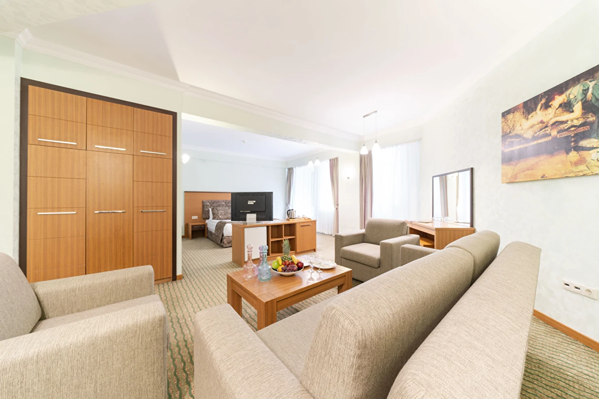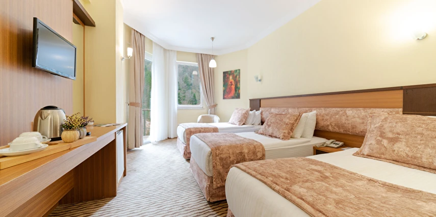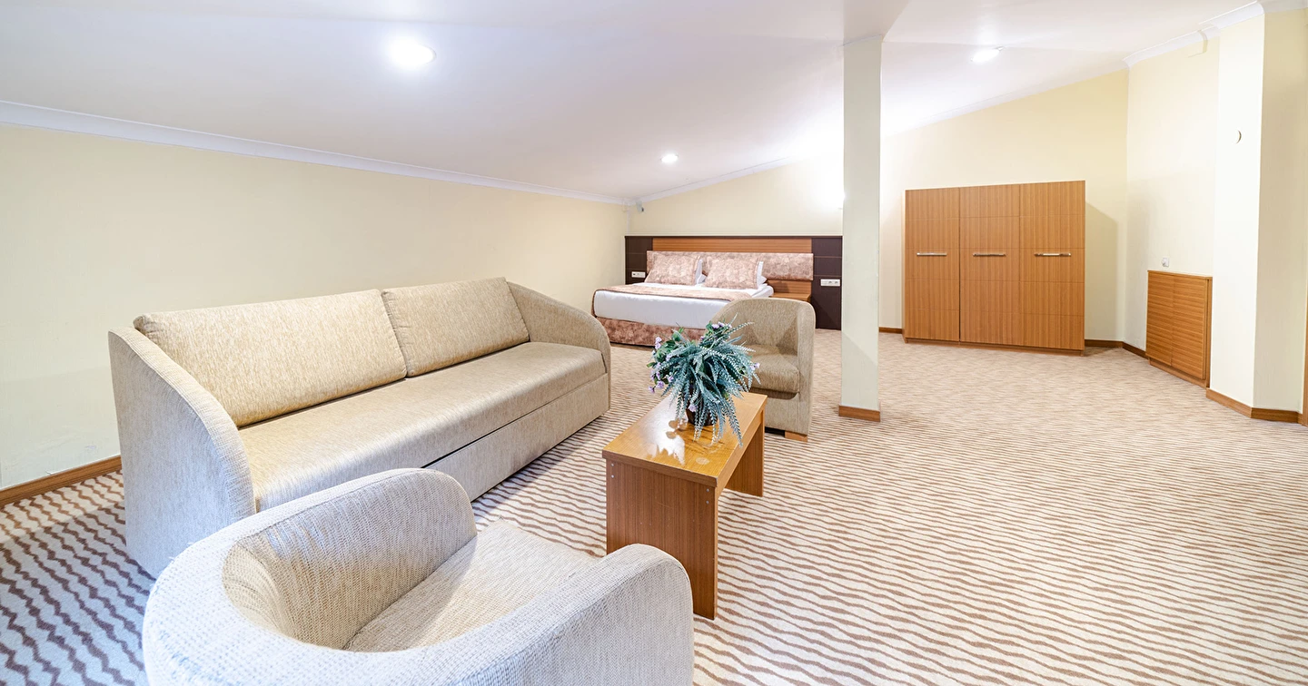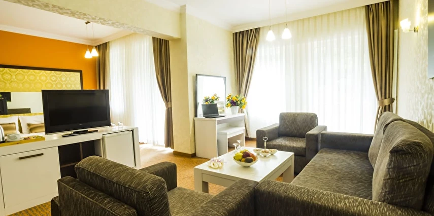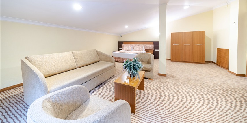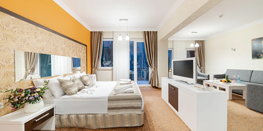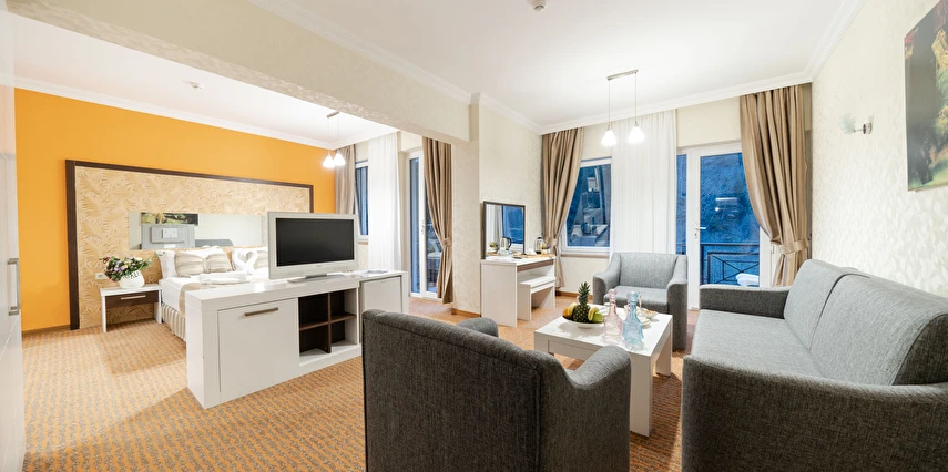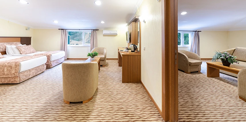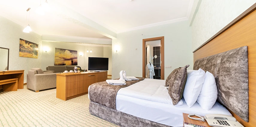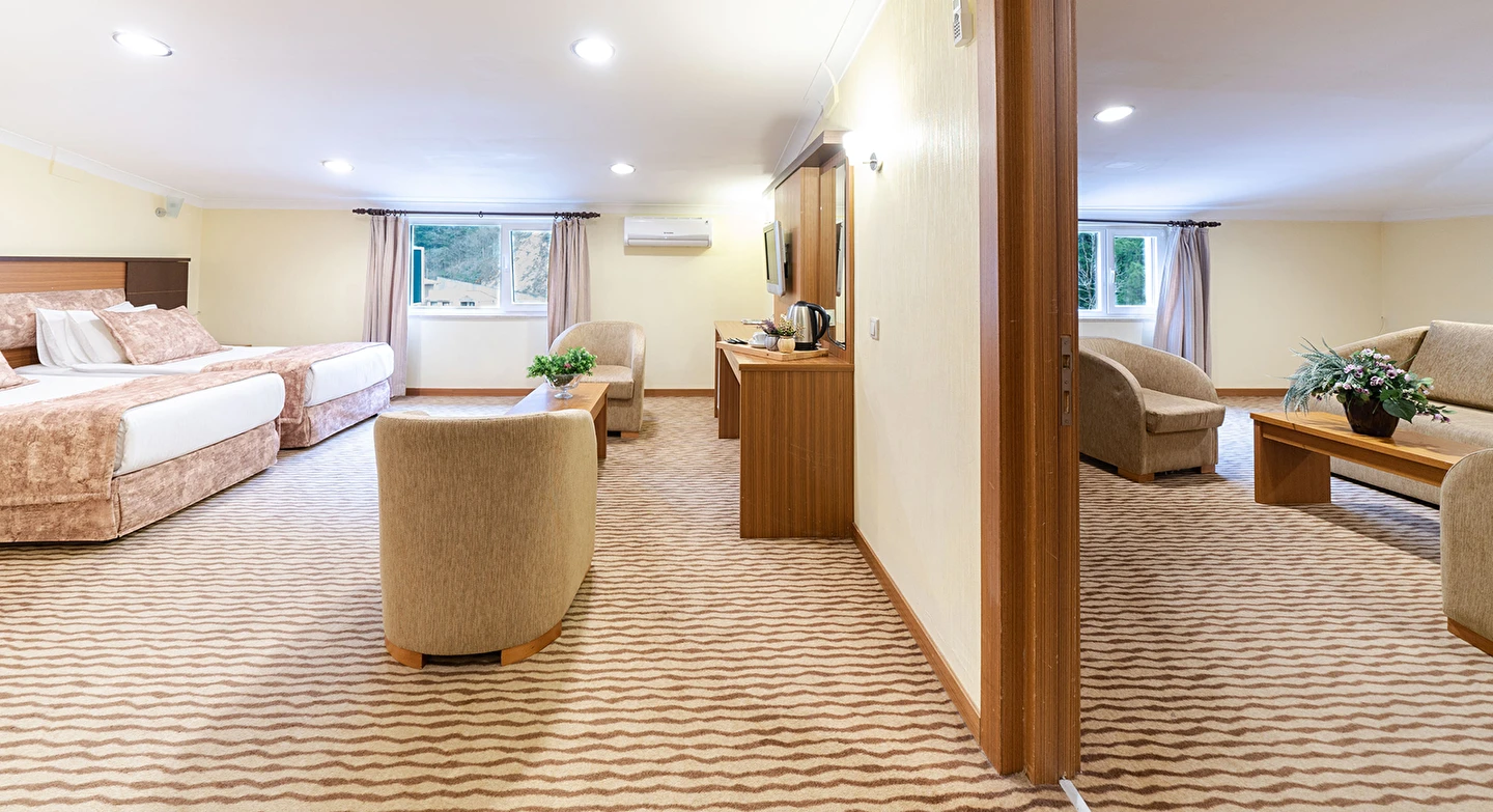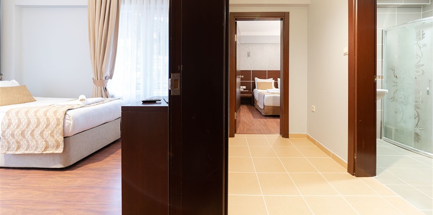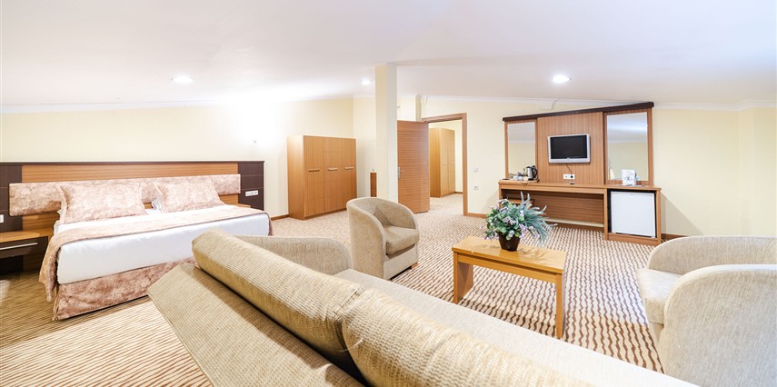 - Famili room: 1 yatak odası, 1 oturma odası, 1 adet de banyodan oluşan famili room, 60 metrekare büyüklüğündedir. Minibar, tv, uydu kanalları, telefon, oda servisi, klima, ısıtma ve daha birçok özellik bulunmaktadır.
