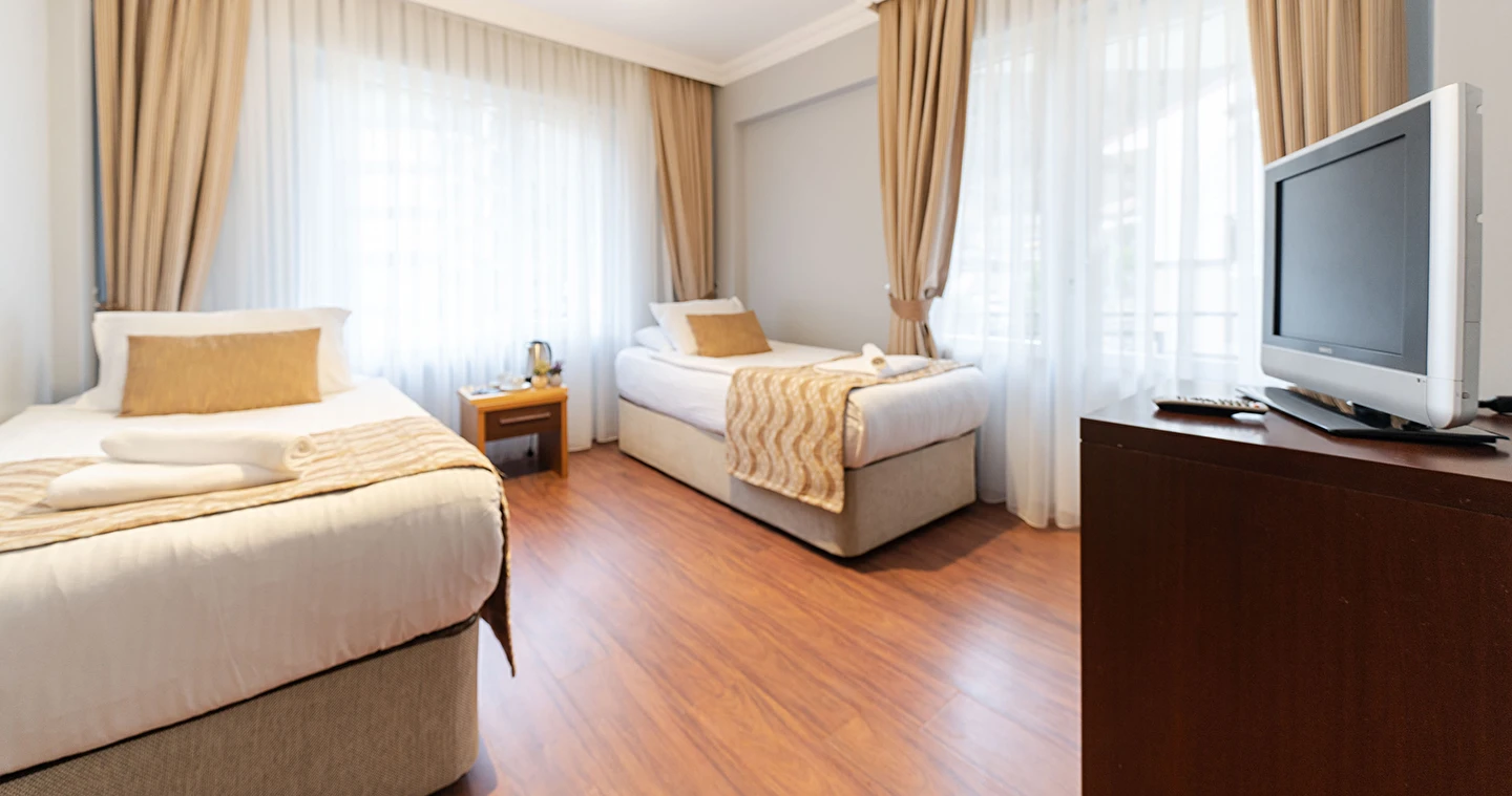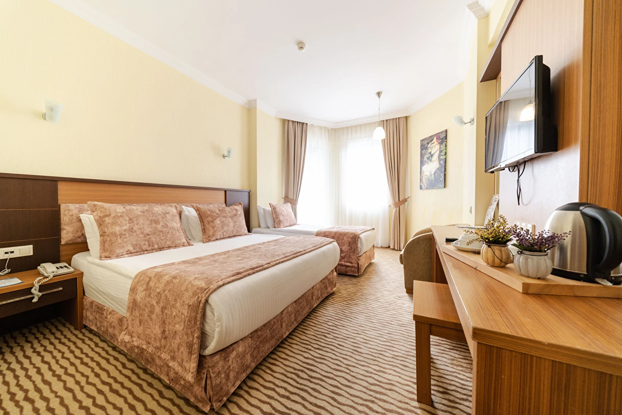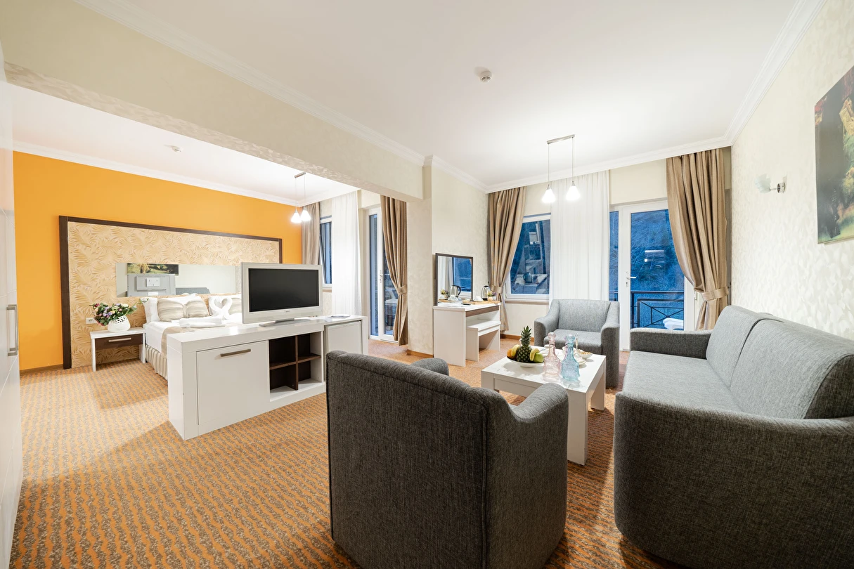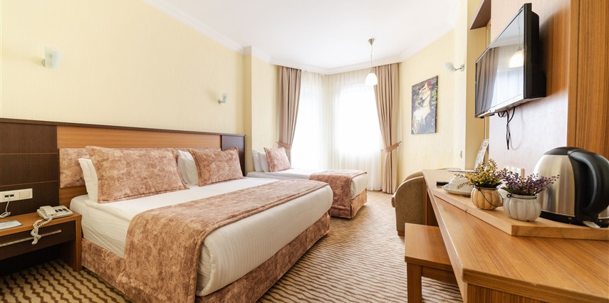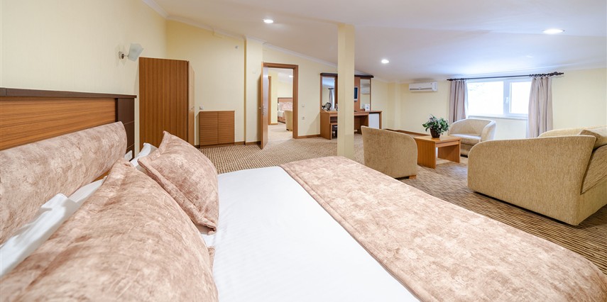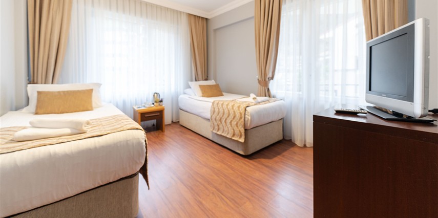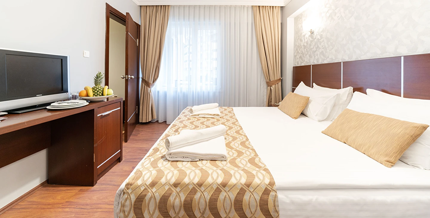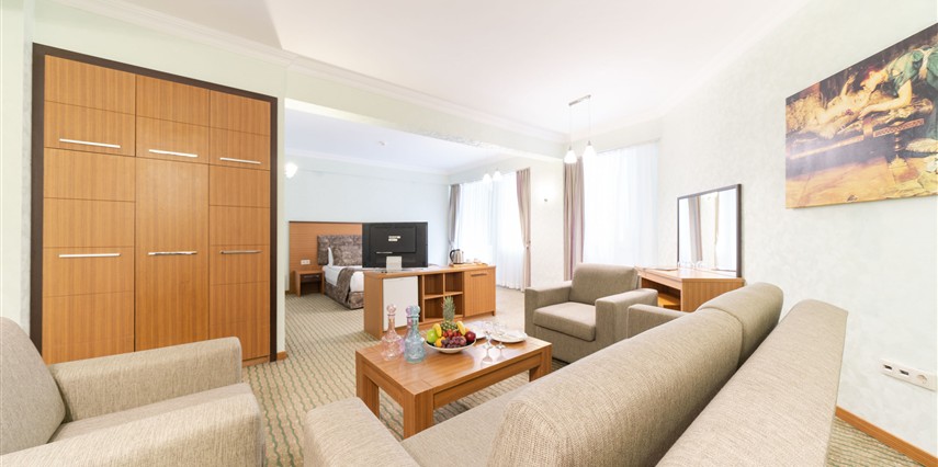 - Famili room: 1 yatak odası, 1 oturma odası, 1 adet de banyodan oluşan famili room, 60 metrekare büyüklüğündedir. Minibar, tv, uydu kanalları, telefon, oda servisi, klima, ısıtma ve daha birçok özellik bulunmaktadır.