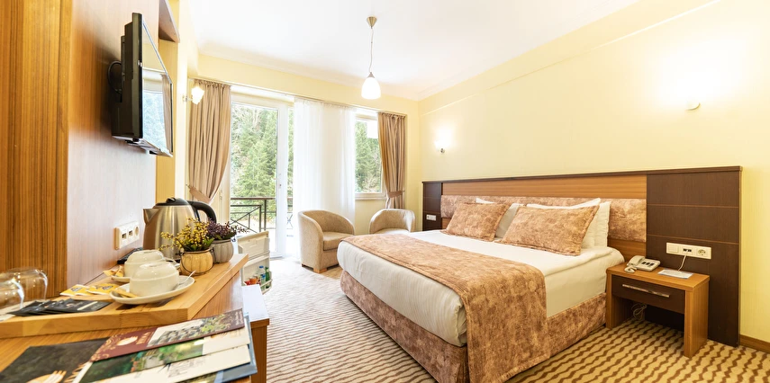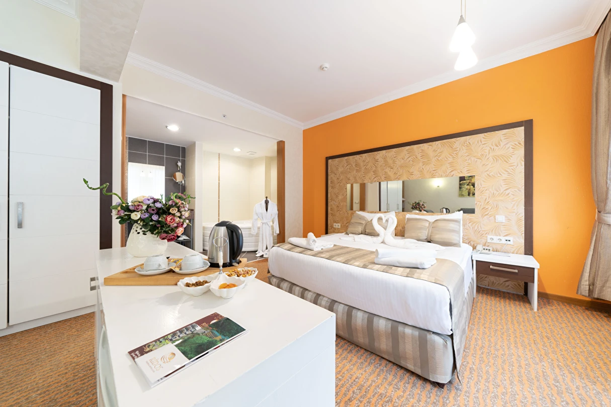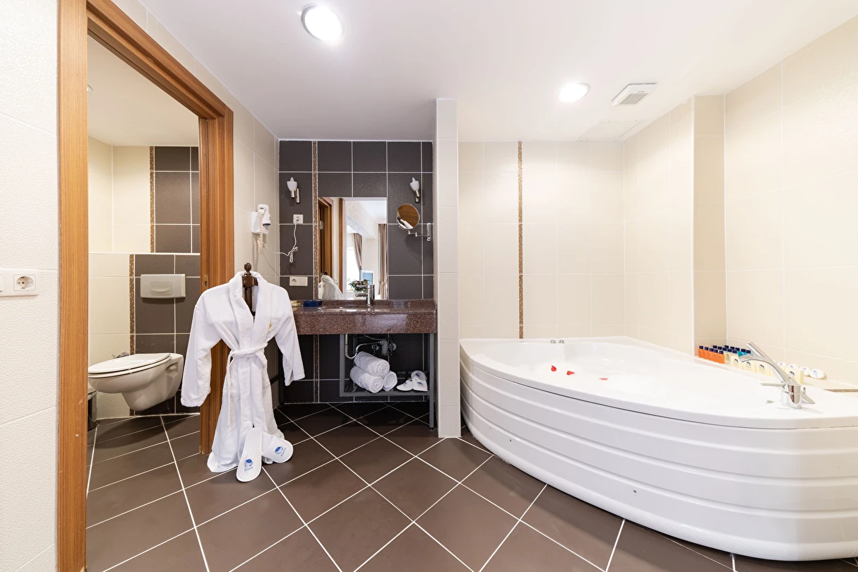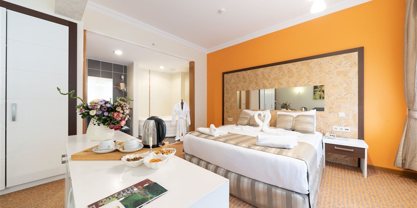 - Corner suit: 55 metrekare olan bu odalar, antialerjik özelliktedir. Halı kaplı zemin, ısıtma, klima, tv, uydu kanalları, özel balkon, doğa manzarası, gardırop, minibar, emanet kasası ve daha birçok özellik odada bulunmaktadır.