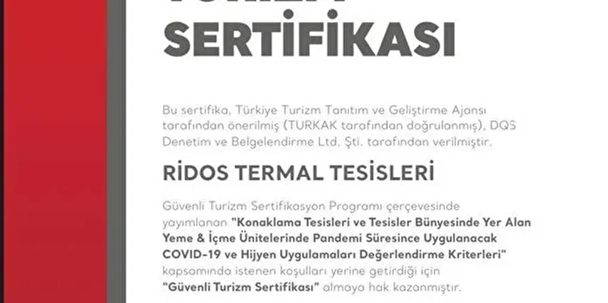 Tam olarak 30 dönüm arazi üzerine kurulmuş olan Ridos Thermal Otel, orman içinde yer alan bir oteldir. Hem huzurlu hem de sağlık dolu bir tatil için en uygun termal otel olan Ridos, hem yerli hem de yabancı turistleri yıllardır ağırlamaktadır. Oldukça güzel dizayn edilmiş ve müşteri memnuniyeti için bütün detayların düşünülmüş olduğu Ridos Thermal Hotel & Spa, beş yıldızlı bir oteldir. Ulaşım imkanları oldukça gelişmiş olan otel, dünya standartlarında vermiş olduğu hizmetle bütün misafirlerinin memnun ayrılmasını sağlamaktadır. Fitness, sauna, açık ve kapalı yüzme havuzşarı ve daha birçok imkanın bulunduğu Ridos Thermal Otel, yaz kış hizmet veren bir oteldir. Termal suları ile şifa dağıtan ve sağlık amacı ile de gelen binlerce misafiri ağırlayan Ridos Thermal Otel için otelz sitesinden ücretsiz bir şekilde rezervasyon yaptırabilirsiniz. Otel hakkında daha geniş bilgiyi ve kullanıcı yorumlarını da otelz sitesinde görebilirsiniz.