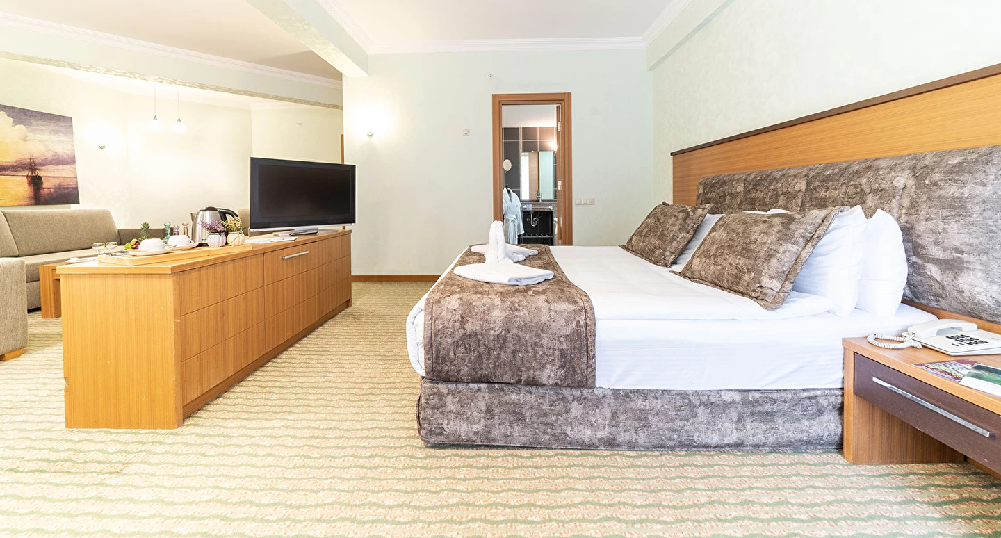 - Junior suit:55 metrekare olarak tasarlanmış olan junior suit odalarda, emanet kasası, halı kaplı zemin, Tv, telefon, uydu kanalları, banyo, ücretsiz banyo malzemeleri, wifi, minibar ve daha birçok özellik bulunmaktadır. En az 3 kişi kapasiteli olan odalarda klima ve ısıtma da bulunmaktadır.