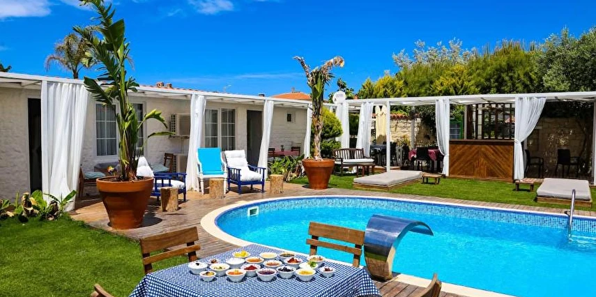 Huzur veren bahçesi ve Alaçatı ruhunu yansıtan mimarisi ile öne çıkan Rikas Alaçatı, konforlu ve keyifli bir tatilin kapılarını aralıyor. Merkezi konumu ile misafirlere avantaj sağlayan tesisin ferah bahçesinde açık yüzme havuzu bulunuyor. Tesiste konaklayan misafirler, güne lezzetli bir kahvaltı servisi ile başlayabilir.