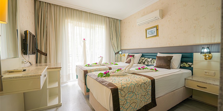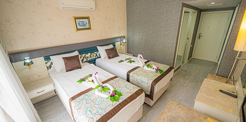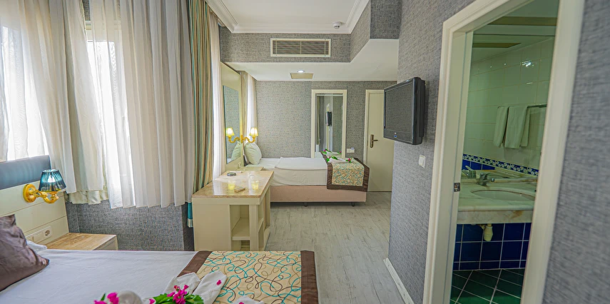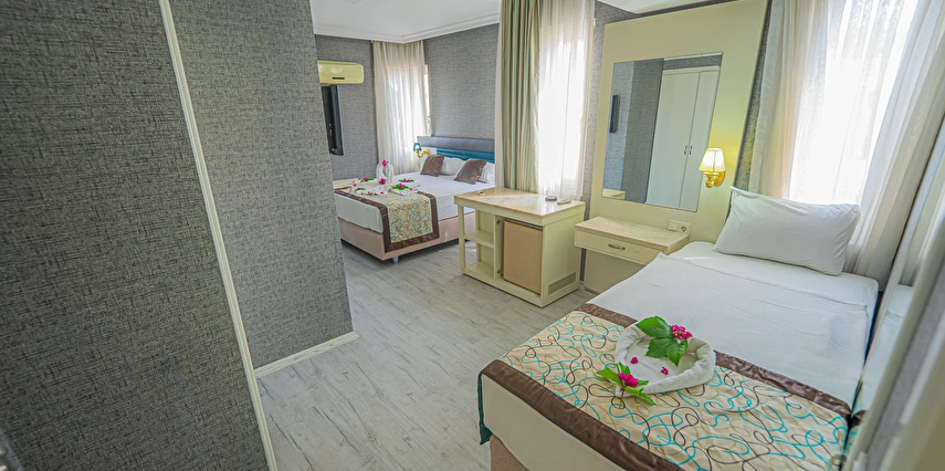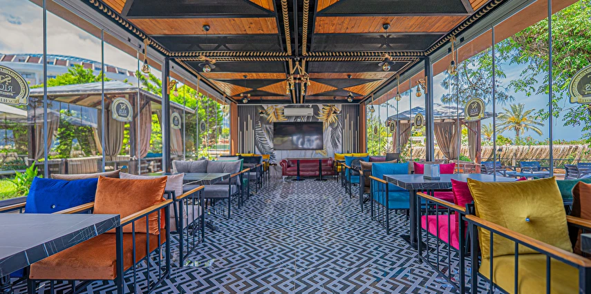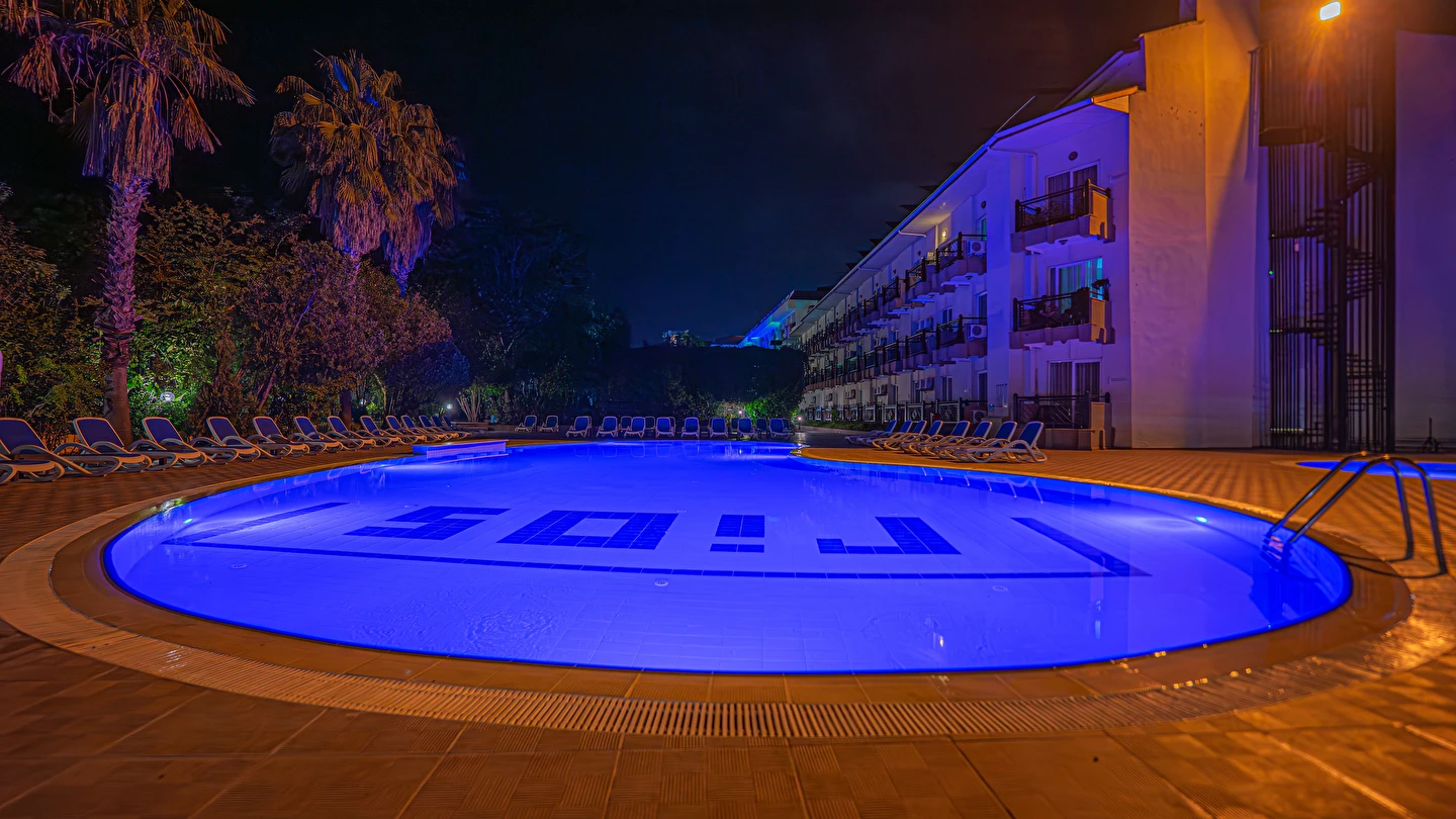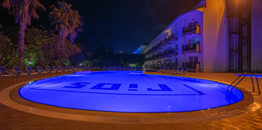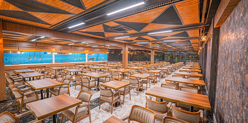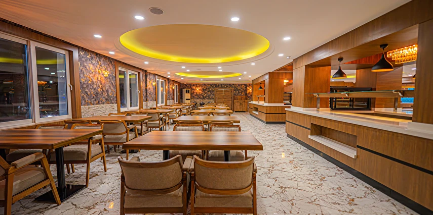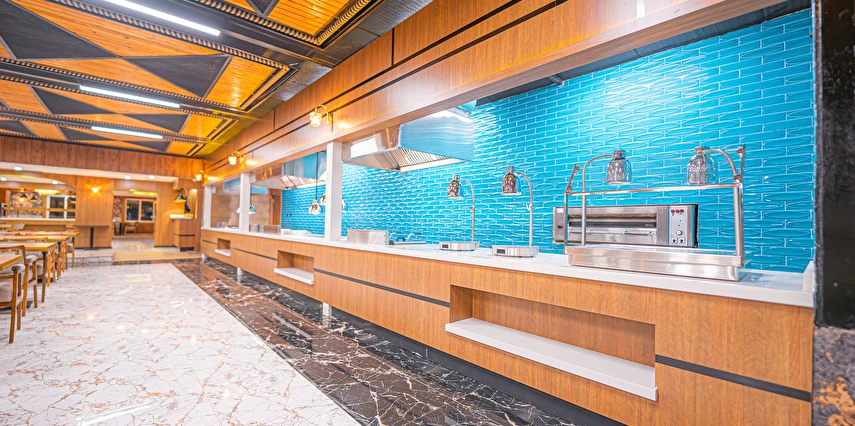 Sabah kahvaltısı, öğle ve akşam yemekleri açık büfe olup tesisin belirlediği markalar dahilinde yerli alkolsüz içecekler 10:00 ile 21:30 saatleri arasında ücretsizdir.