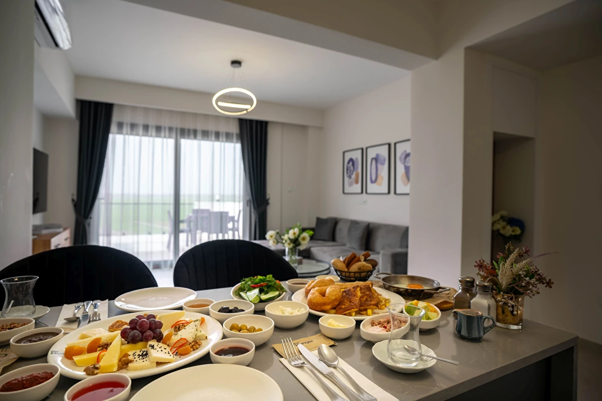 • (2 kişilik serpme kahvaltı farkı 40 EUR’dur.2 yetişkin + 2 çocuk için uygundur.)