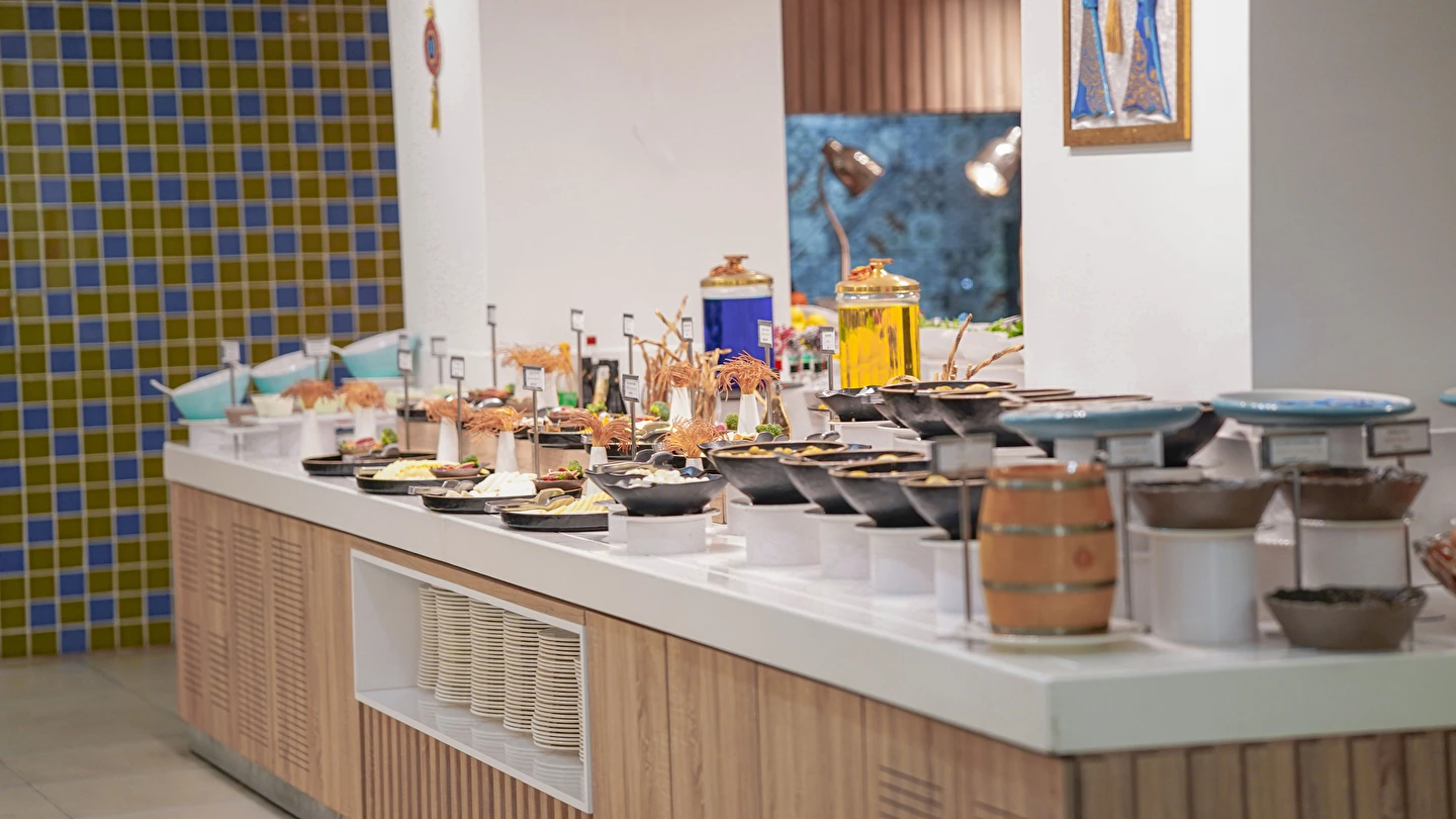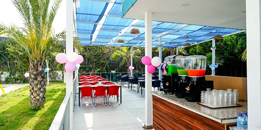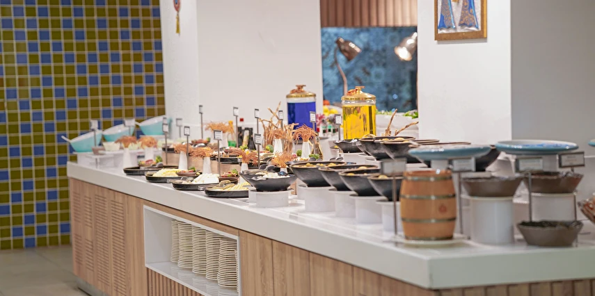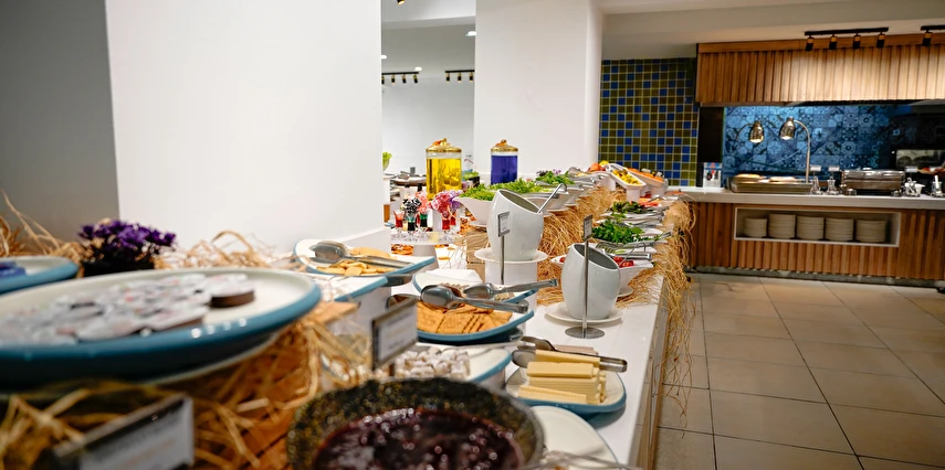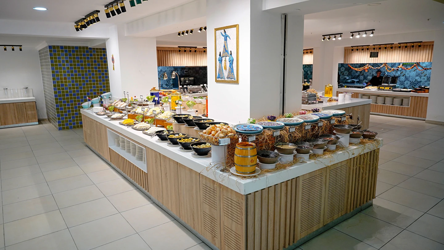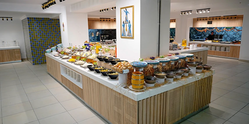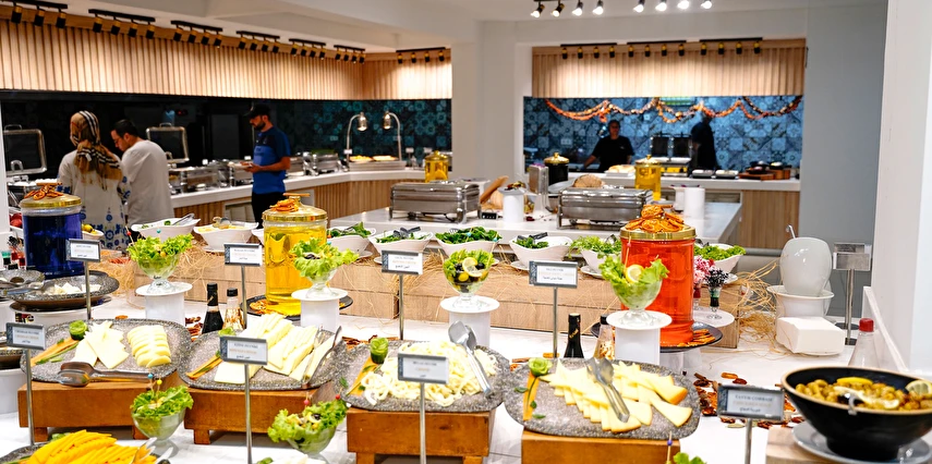Sabah kahvaltısı, öğle ve akşam yemekleri açık büfe olup, tesisin belirlemiş olduğu markalar dahilinde yerli içecekler ücretsizdir. Lobide Türk kahvesi dahil tüm içecekler -Pastane bölümünde tüm yiyecek içecekler -Dondurma servisi ücretsizdir. Köz Kafe yiyecek ve içecekler (su hariç), Taze sıkılmış meyve suyu ücretlidir.