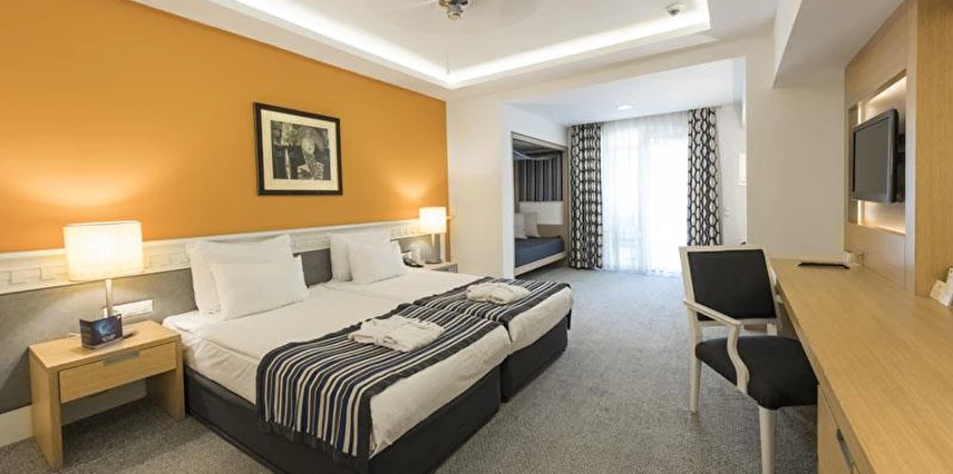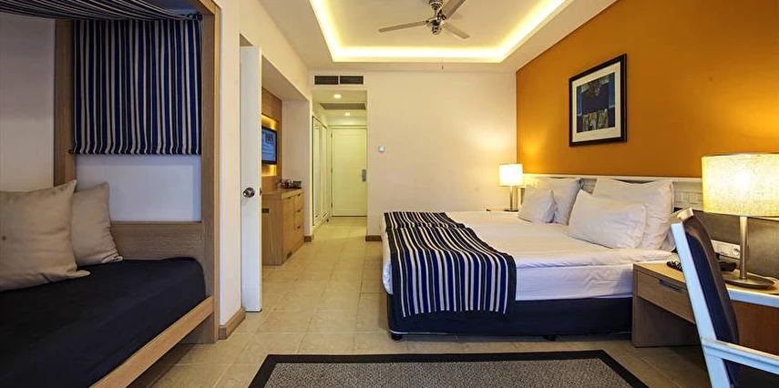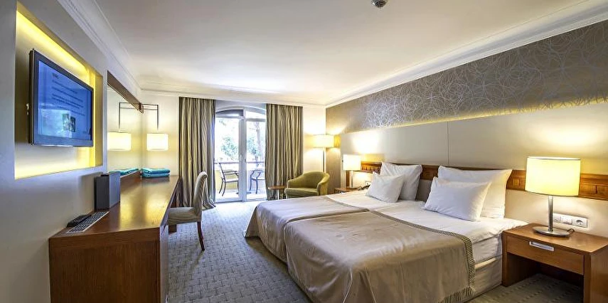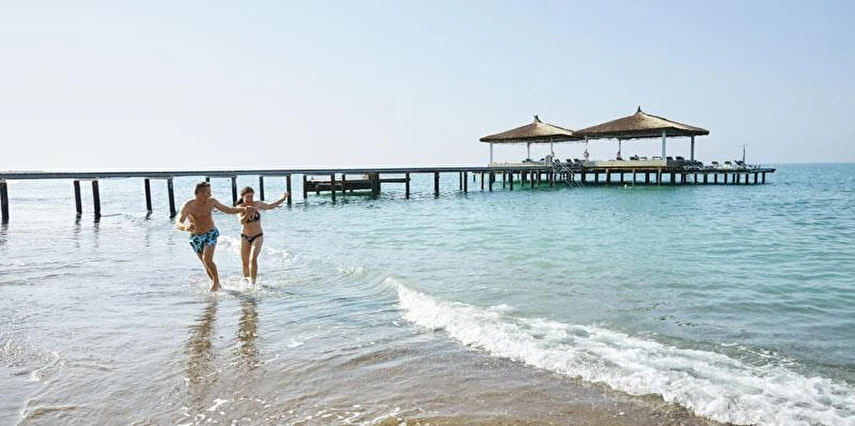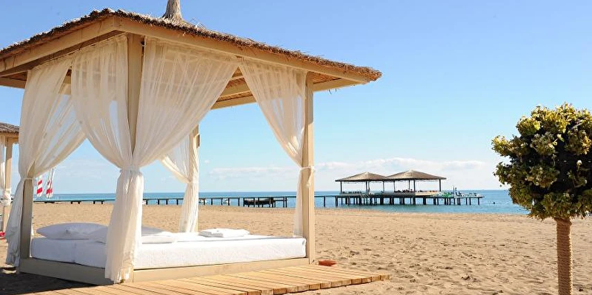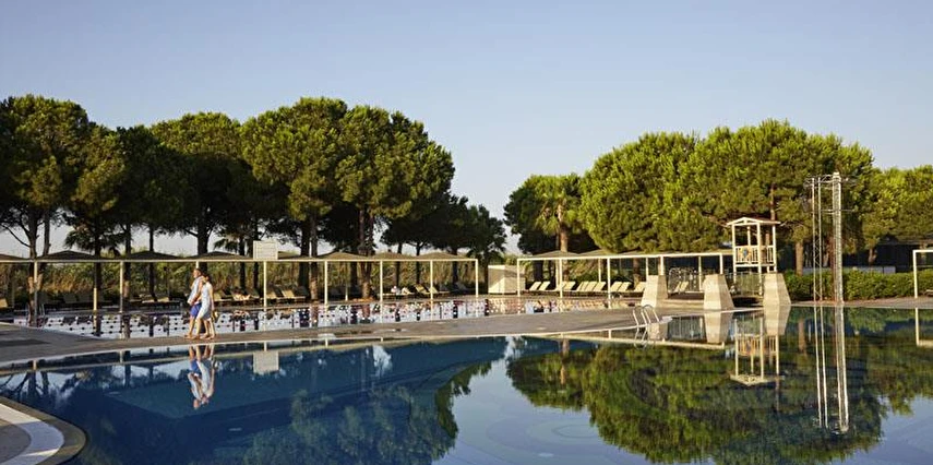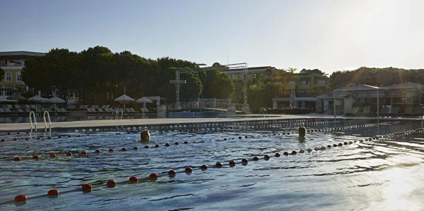 Ana havuz (açık havada): 950 m², derinlik:1,40 m Relax havuzu(açık havada,16 yaş itibaren) derinlik: 1,40 m 25 m-Spor-havuzu (açık havada): 312 m² derinlik:1,40 m Kaydıraklı kapalı havuz (kapalı alanda): 360 m² derinlik1,40 m (ısıtmalı) Kaydıraklı çocuk havuzu (açık havada, Nisan ayından Kasım ayına kadar): 240 m² derinlik: 0,90 m (ısıtmalı) Güneş korunaklı çocuk havuzu (açık havada): derinlik 0,30 m (ısıtmalı) Çocuk havuzu (kapalı alanda) derinlik:0,30 m (ısıtmalı) Plaj havlularının kullanımı ücretsizdir Havuz kenarında ve sahilde ücretsiz olarak şezlong ve şemsiyeler bulunmaktadır Sahilde Bali evleri, (ücret karşılığında) kişiye özel içecek servisi ile rezerve edilebilir.