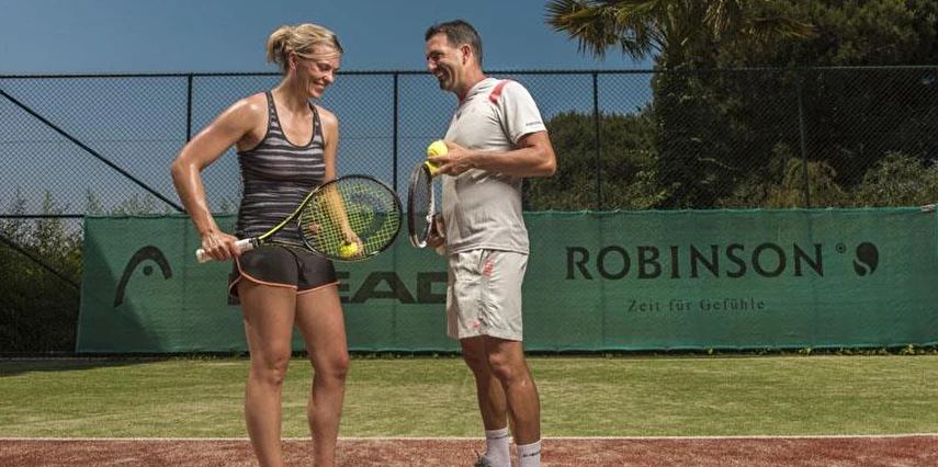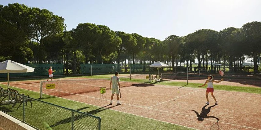 Tenis Ekipman: 6 kuvars kumlu tenis kortu, 3’ü ışıklandırmalı, Tenis bar, Tenis okulu*, Test kontenjanlı-HEAD Raketleri Ücretsiz: Tenis saha kullanımı, HEAD marka raket kiralama Haftalık başlangıç seviyesi için deneme dersi Haftalık misafir turnuvası. // Ücretli: Tenis toplarının satışı HEAD marka raket satışı ROBINSON antrenmanı/eğitimi Yeni başlayanlar, ileri seviye oyuncuları, takım ve turnuva oyuncuları için özel antremanlar sunulmaktadır Kurslar ve eğitimler: Bireysel ve grup antrenmanları (Fiyat bilgisi tesiste verilmektedir.)