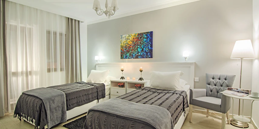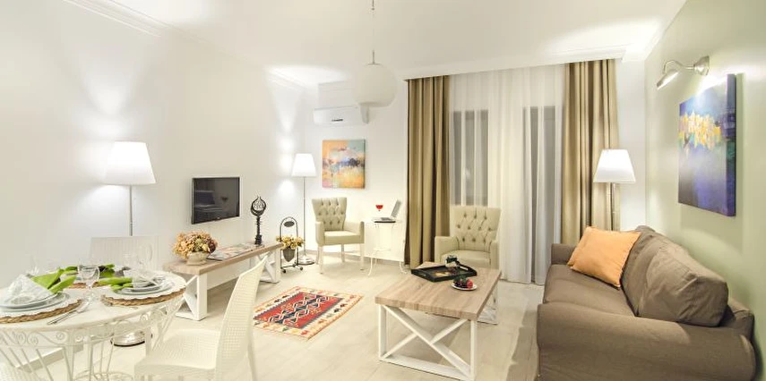 Aile işletmesi olan otelimiz 2015 yılında tamamen yenilenmiştir. Siz değerli misafirlerimizin eşsiz bir tatil keyfi yaşaması için tasarımda sadelik ve konforun önemsendiği süitlerin her biri farklı şıklıkta olup zarif bir şekilde dekore edilmiştir. Kısa veya uzun süreli konaklama imkânı sağlayan otelimizin bütün odalarında balkon, banyo, tam donanımlı mutfak malzemeleri, yatak odası ve oturma odasıyla konuklara keyifli bir yaşam alanı sunmaktadır.