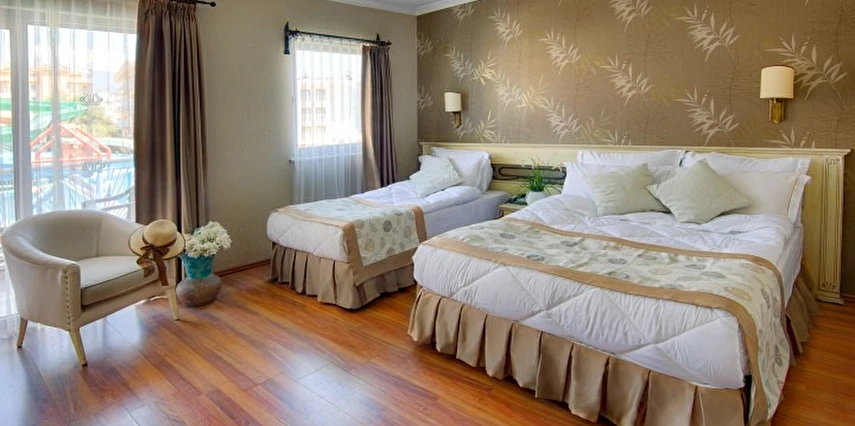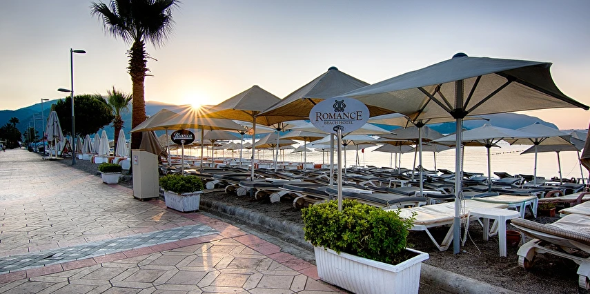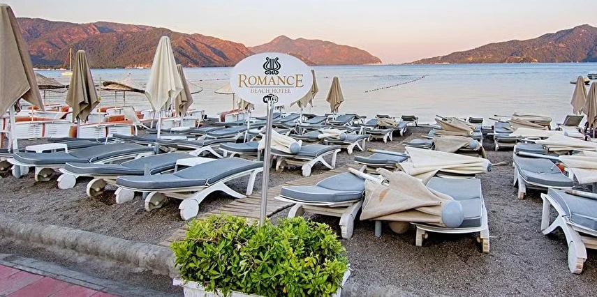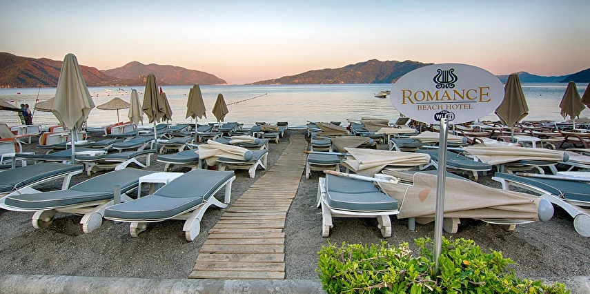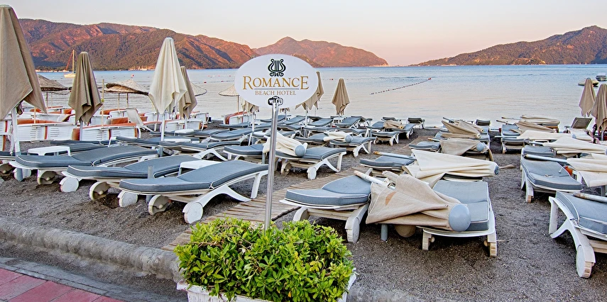 Tesis, Marmaris Uzunyalı mevkiinde denize sıfır konumda yer alıyor. Toplam 63 odası ile misafirlerini ağırlayan tesisin ana restoranında ve 3 adet barında birçok lezzeti tatma imkanı bulabilirsiniz. Tesisin SPA merkezi bünyesinde bulunan sauna, hamam ve masaj imkanları ile rahatlayabilir; fitness merkezi ile formunuzu koruyabilirsiniz. Tesiste bulunan açık yüzme havuzu ve çocuk havuzu tatilinizin tadını çıkarabilirsiniz. Marmaris Uzunyalı mevkiinde denize sıfır konumda bulunmaktadır. Tesis toplam 63 odası ile misafirlerine konforlu hizmet sağlamaktadır. Tesisin ana restoran ve 3 adet barında birçok lezzeti tatma imkanı bulabilirsiniz. Tesisin SPA merkezi bünyesinde bulunan sauna, hamam ve masaj imkanları ile rahatlayabilir; Fitness merkezi ile formunuzu koruyabilirsiniz. Tesiste bulunan açık yüzme havuzu ve çocuk havuzu ile yüzebilir; animasyon ve aktivite imkanları ile doyasıya eğlenebilirsiniz. Marmaris’in Uzunyalı mevkiinde denize sıfır konumuyla misafirlerini ağırlayan Romance Beach Hotel, 63 odası ile konforlu bir tatil deneyimi yaşatıyor.