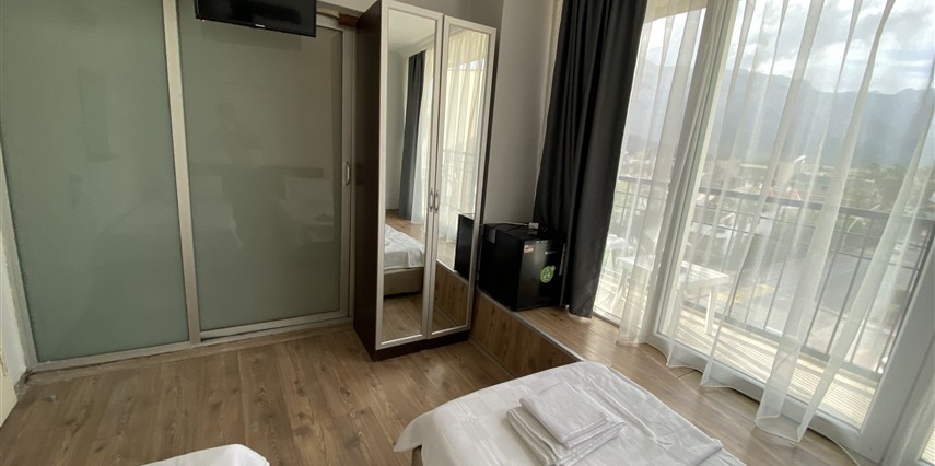 Otel Romeo Beach bünyesinde 4 tip konaklama birimi barındırıyor. Bu birimler Standart Oda, Select Oda, Aile Odası ve Ekonomik- Tek Kişilik olarak isimlendiriliyor. Odalarda klima, LCD TV ve kablosuz internet bağlantısı bulunuyor. Bunlara ek olarak odalarda mini bar, buzdolabı ve emanet kasası da bulunuyor. Tesisin odalarının bahçe, dağ ve şehir manzarası opsiyonları bulunuyor.