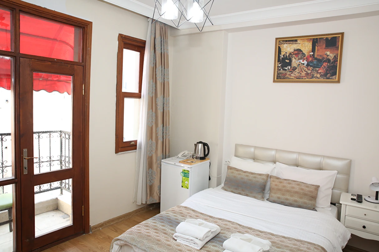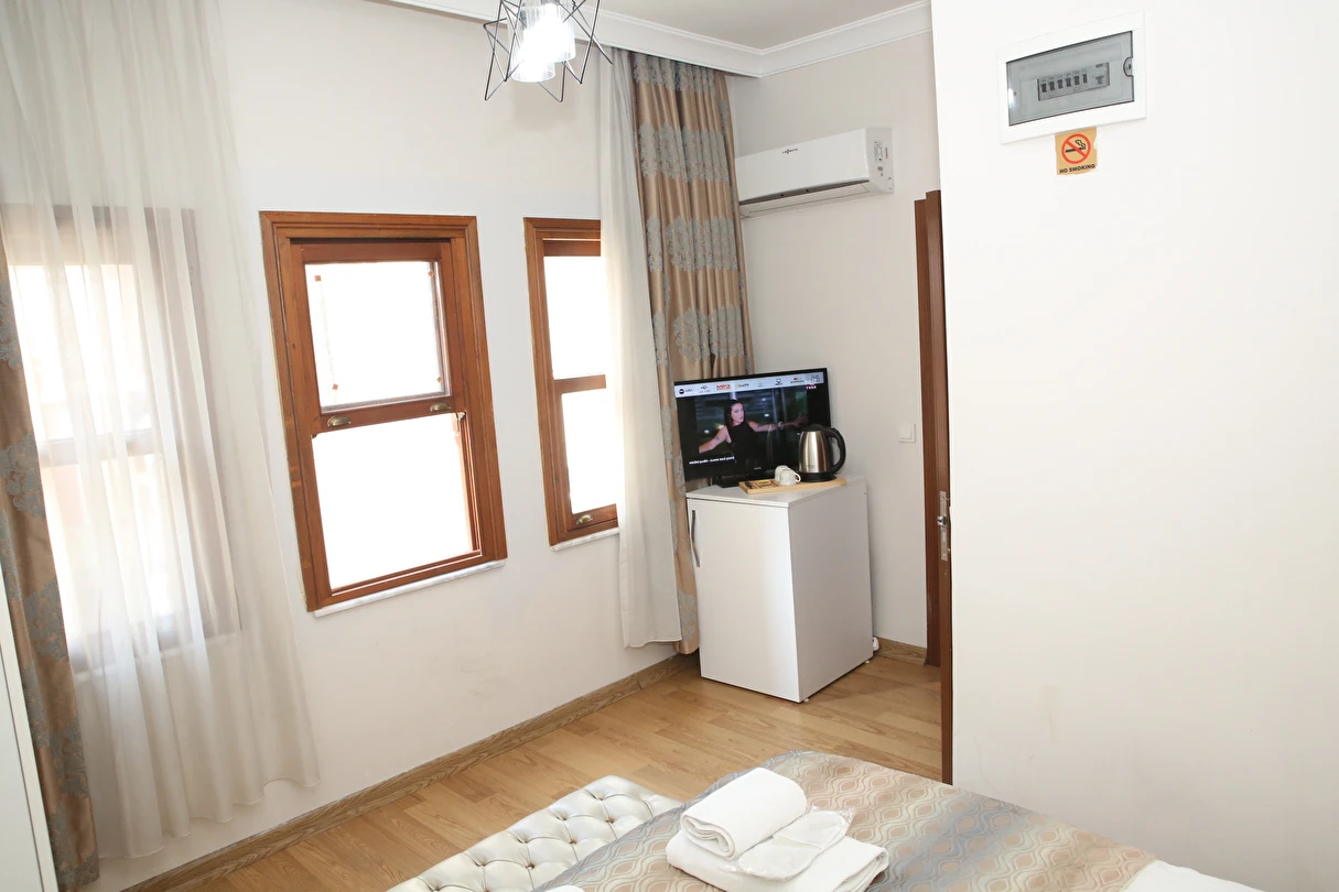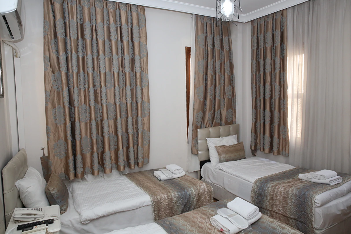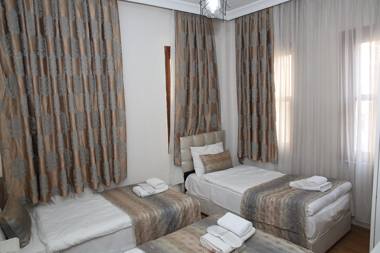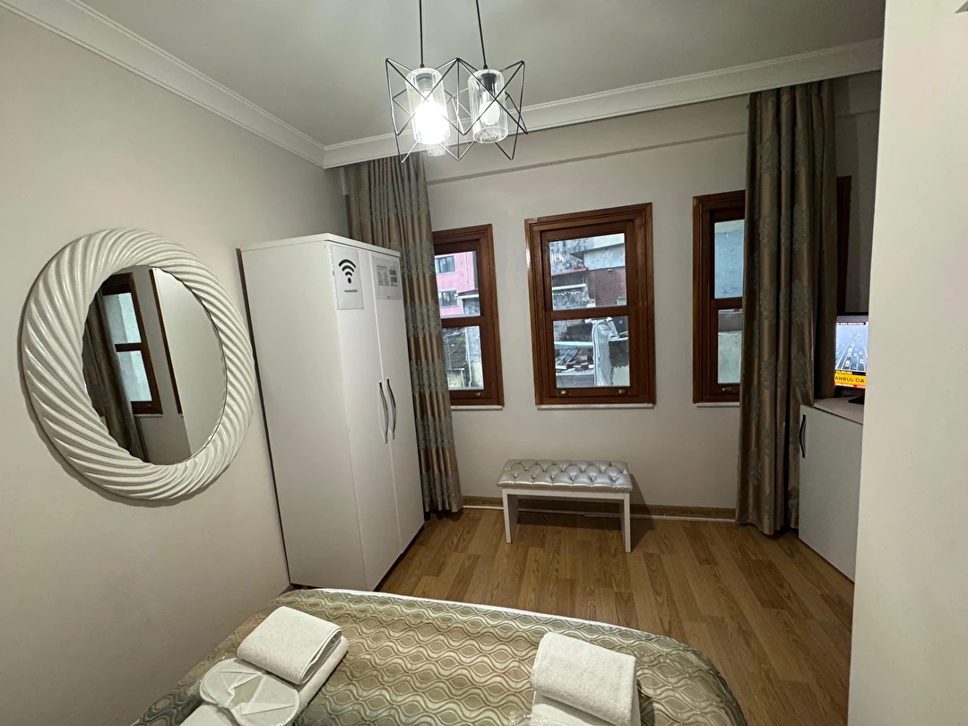 Daha Fazla GösterYenilenmiş olan tarihi Rum yapım binalardan oluşan otelimiz, Yenikapı metro/marmaray duraklarına ve Aksaray Tramvay durağına 5 dakika yürüme mesafesindedir. Kapalıçarşı ve Sultanahmet gibi tarihi yerlere hem yürüme hem de tramvay kullanarak kolaylıkla ulaşabilirsiniz. IDO feribot iskelesi 5 dakika uzaklıktadır. Ayrıca IST havalimanından Aksaray durağına gelen HAVAIST otobüs durağına da 10 dakika yürüme mesafesindeyiz. Otelimizde tek-çift ve üç kişilik balkonlu/balkonsuz odalarımız mevcuttur. Kahvaltı hariç ve dahil fiyatlardan yerimizi ayırtabiliyorsunuz. Asansör olmadığını belirterek, asansör ihtiyacı duyulmadan, giriş kattan başlayarak üçüncü kata kadar odalarımız mevcut. Tüm odalarımızda ve açık alanlarda ücretsiz Wifi bulunmaktadır.