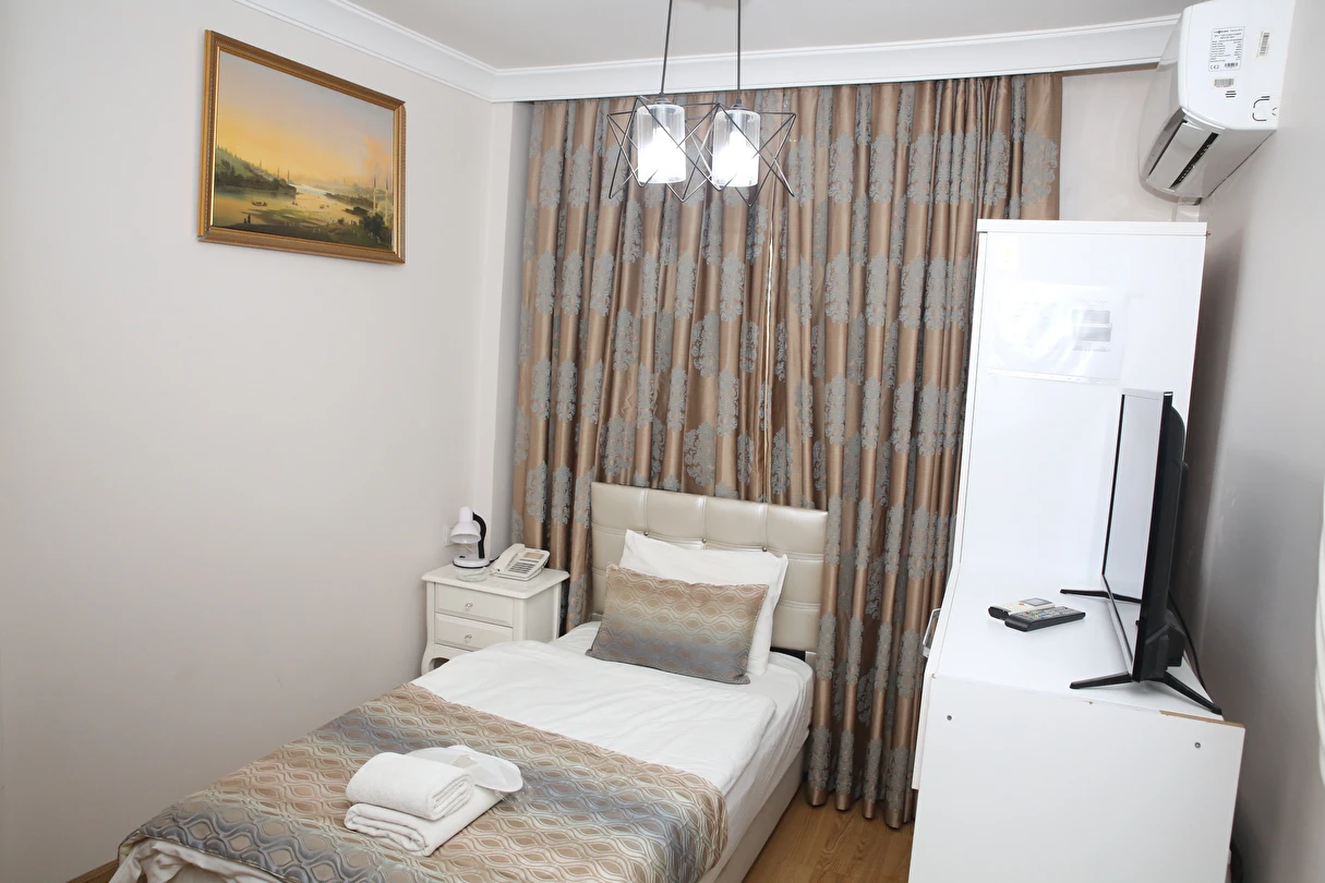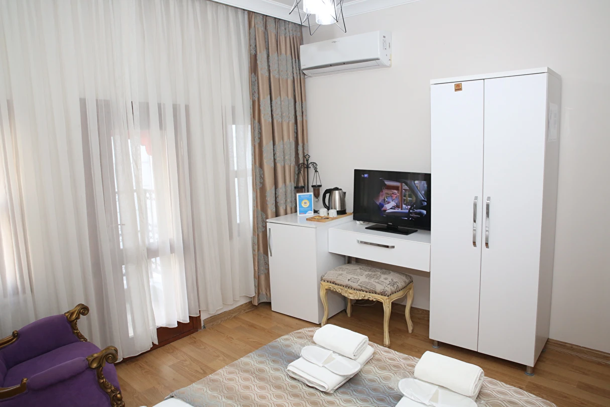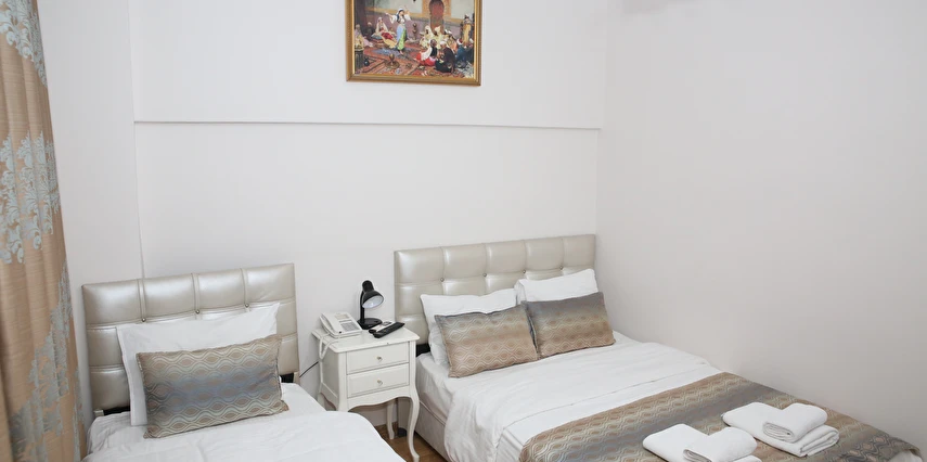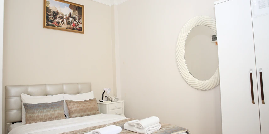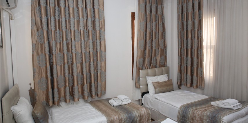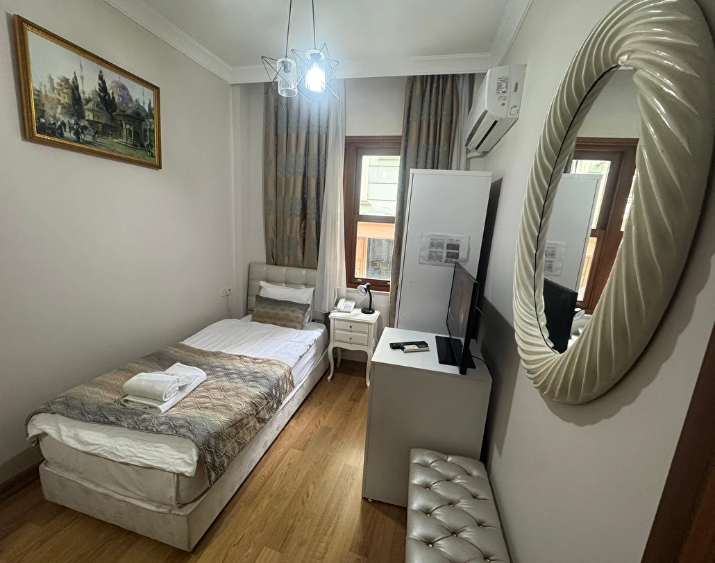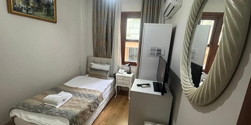 Daha Fazla GösterYenilenmiş olan tarihi Rum yapım binalardan oluşan otelimiz, Yenikapı metro/marmaray duraklarına ve Aksaray Tramvay durağına 5 dakika yürüme mesafesindedir. Kapalıçarşı ve Sultanahmet gibi tarihi yerlere hem yürüme hem de tramvay kullanarak kolaylıkla ulaşabilirsiniz. IDO feribot iskelesi 5 dakika uzaklıktadır. Ayrıca IST havalimanından Aksaray durağına gelen HAVAIST otobüs durağına da 10 dakika yürüme mesafesindeyiz. Otelimizde tek-çift ve üç kişilik balkonlu/balkonsuz odalarımız mevcuttur. Kahvaltı hariç ve dahil fiyatlardan yerimizi ayırtabiliyorsunuz. Asansör olmadığını belirterek, asansör ihtiyacı duyulmadan, giriş kattan başlayarak üçüncü kata kadar odalarımız mevcut. Tüm odalarımızda ve açık alanlarda ücretsiz Wifi bulunmaktadır.