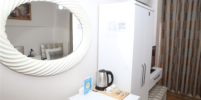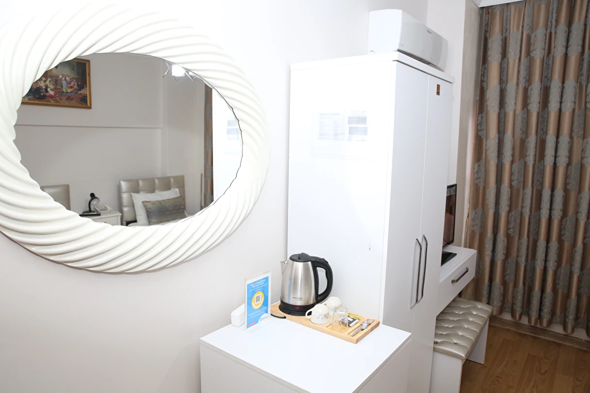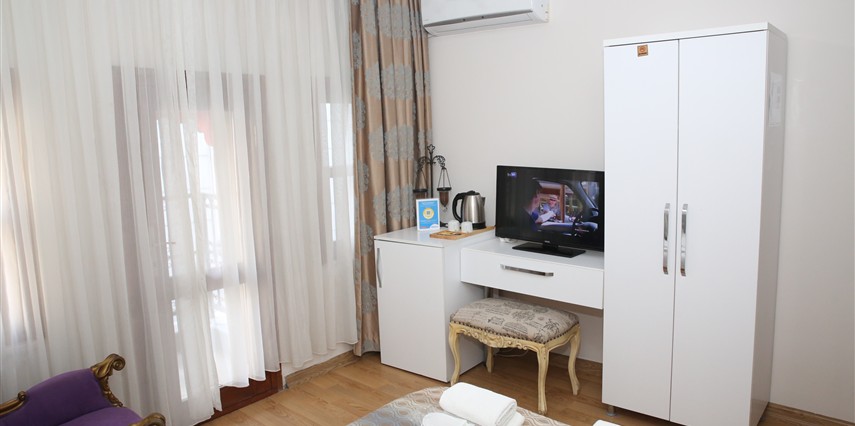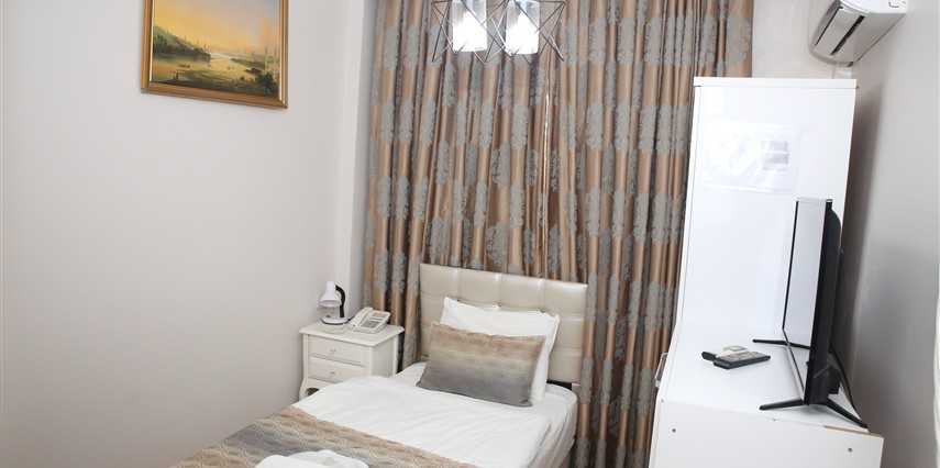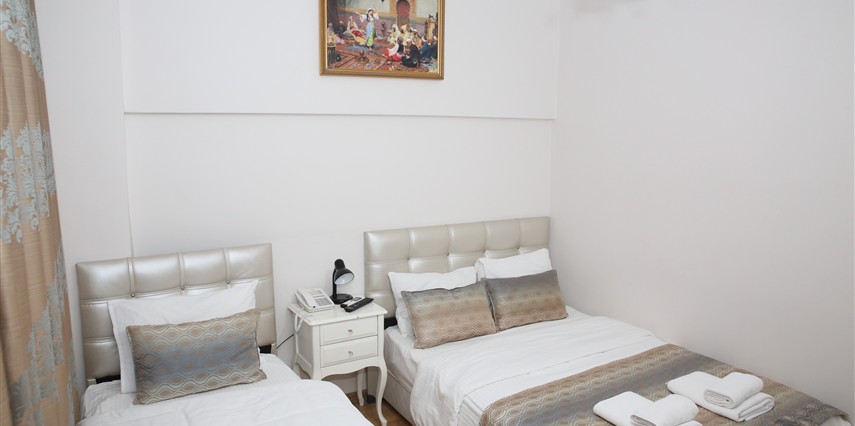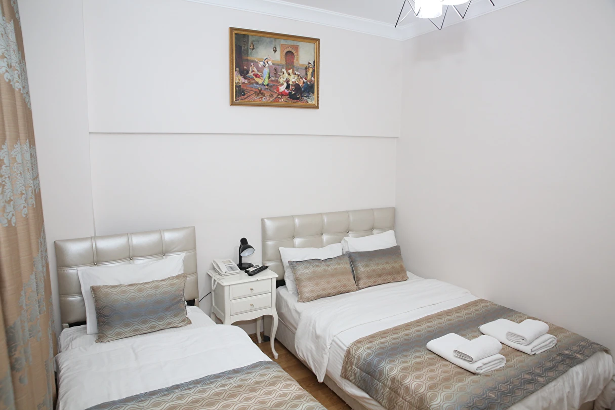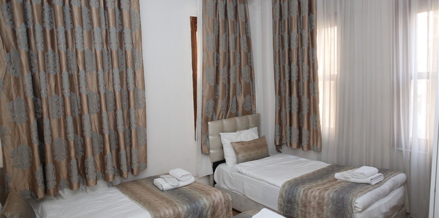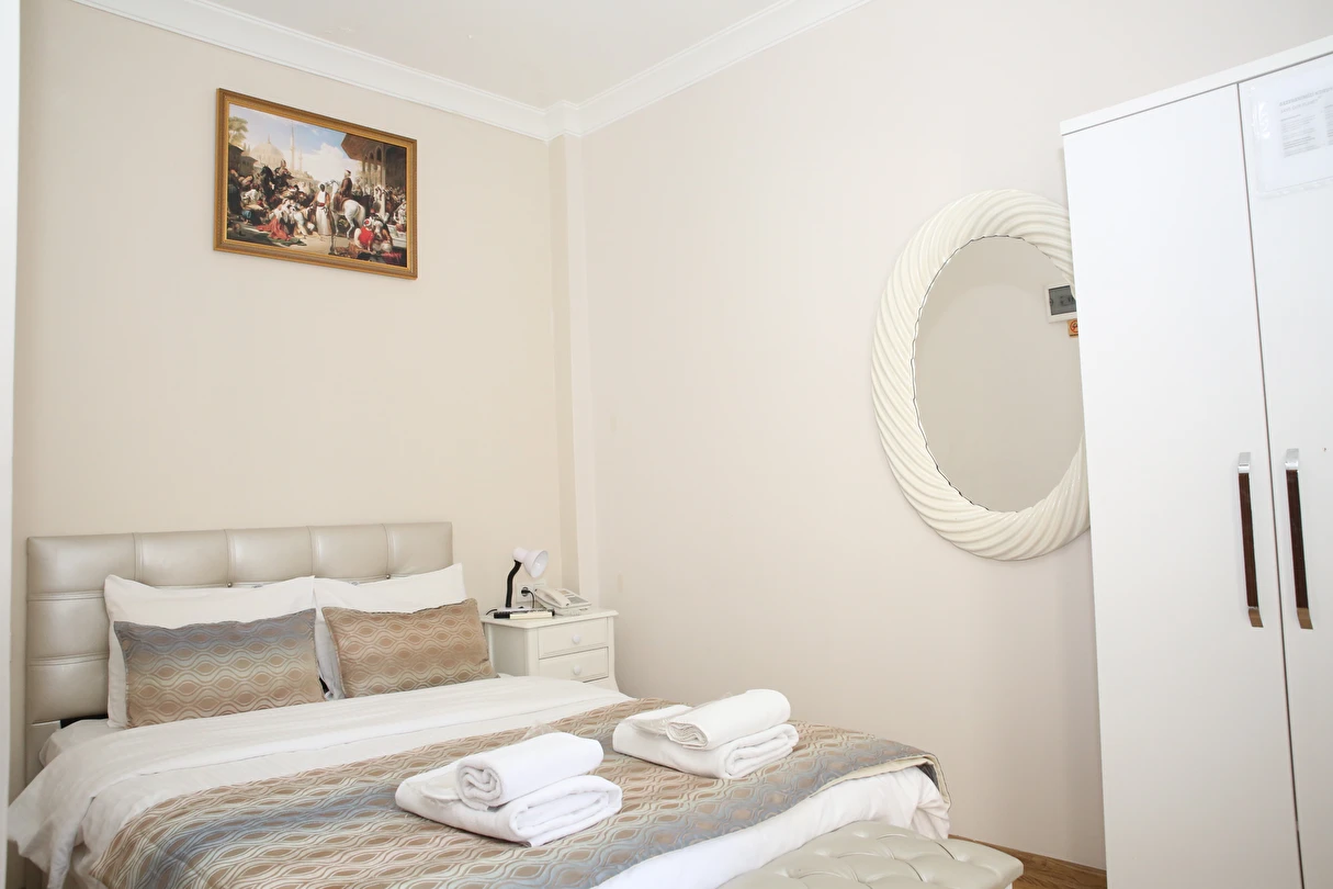 Daha Fazla GösterYenilenmiş olan tarihi Rum yapım binalardan oluşan otelimiz, Yenikapı metro/marmaray duraklarına ve Aksaray Tramvay durağına 5 dakika yürüme mesafesindedir. Kapalıçarşı ve Sultanahmet gibi tarihi yerlere hem yürüme hem de tramvay kullanarak kolaylıkla ulaşabilirsiniz. IDO feribot iskelesi 5 dakika uzaklıktadır. Ayrıca IST havalimanından Aksaray durağına gelen HAVAIST otobüs durağına da 10 dakika yürüme mesafesindeyiz. Otelimizde tek-çift ve üç kişilik balkonlu/balkonsuz odalarımız mevcuttur. Kahvaltı hariç ve dahil fiyatlardan yerimizi ayırtabiliyorsunuz. Asansör olmadığını belirterek, asansör ihtiyacı duyulmadan, giriş kattan başlayarak üçüncü kata kadar odalarımız mevcut. Tüm odalarımızda ve açık alanlarda ücretsiz Wifi bulunmaktadır.