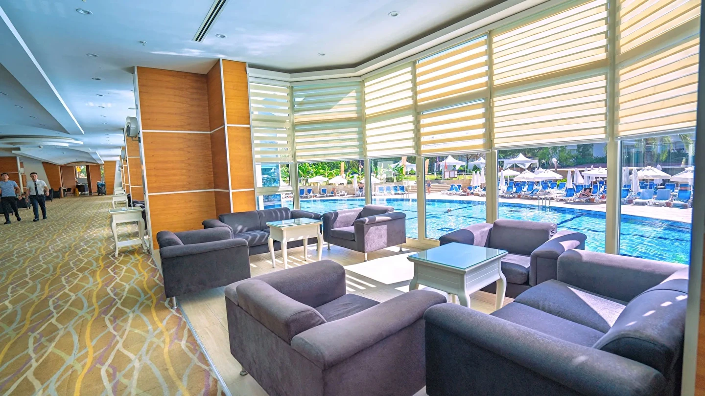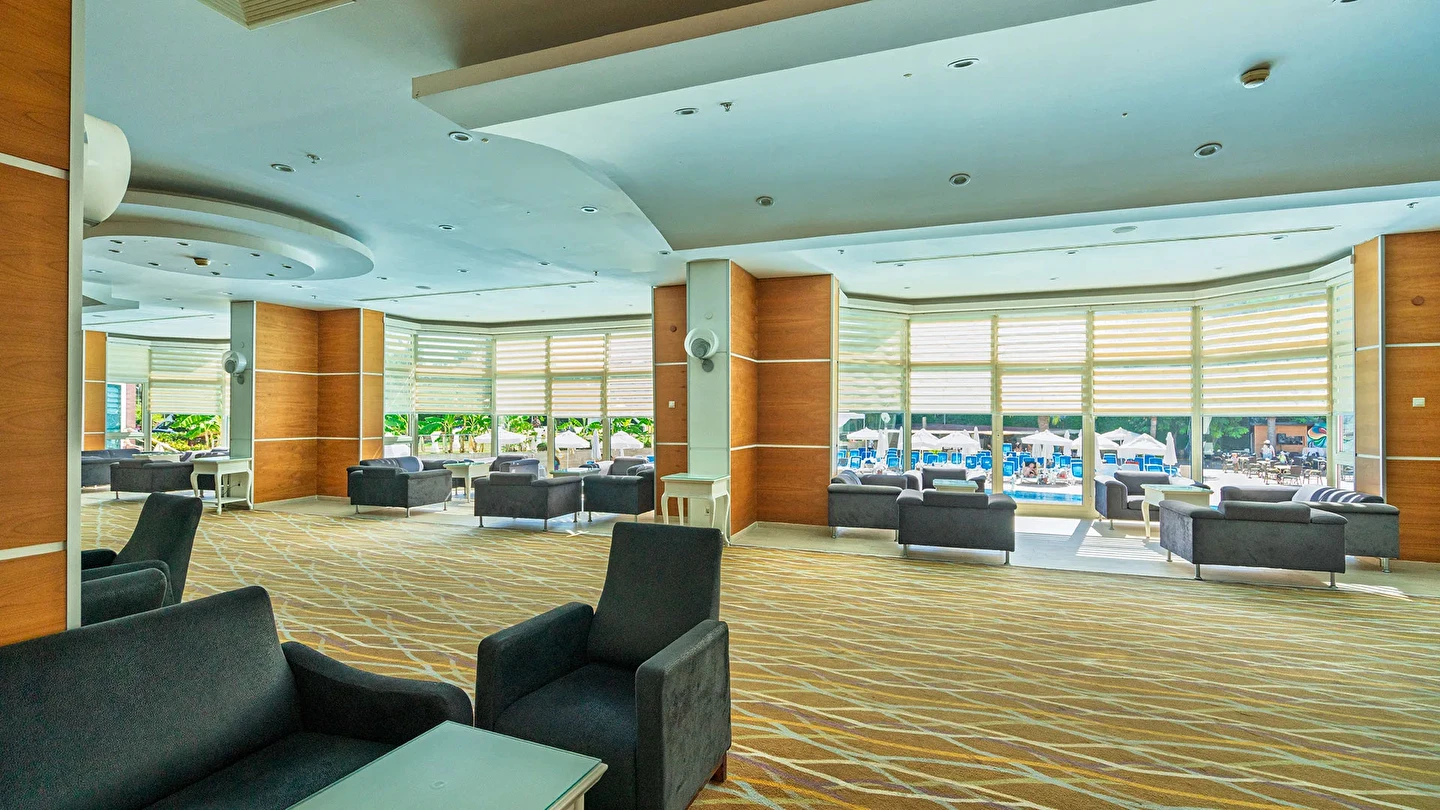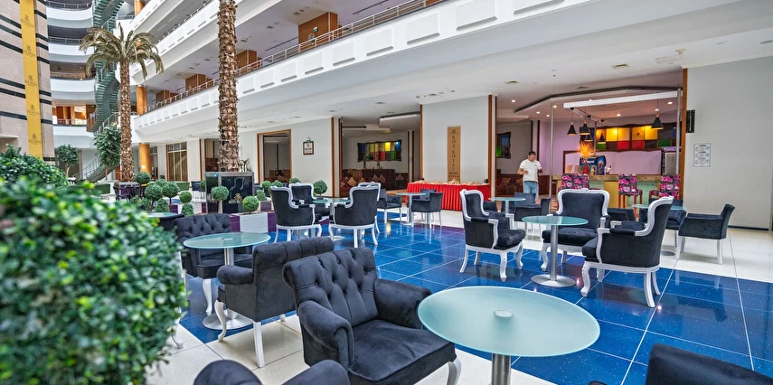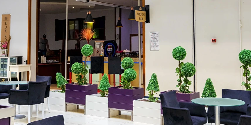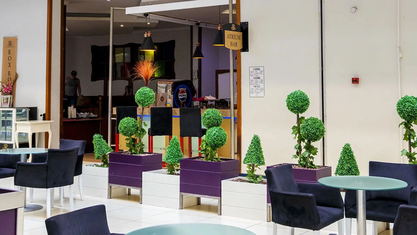 Atrium Bar (10:00 ile 24:00 saatleri arasında)(Konsept- Ultra Herşey Dâhil: Tüm soft içecekler, yerli alkollü ve alkolsüz içecekler ile seçilmiş import içecekler (Vermut, Bitter, Rom gibi) alkollü ve alkolsüz kokteyl çeşitleri, sıcak içecekler – çay/kahve çeşitleri. Masaya Servis)