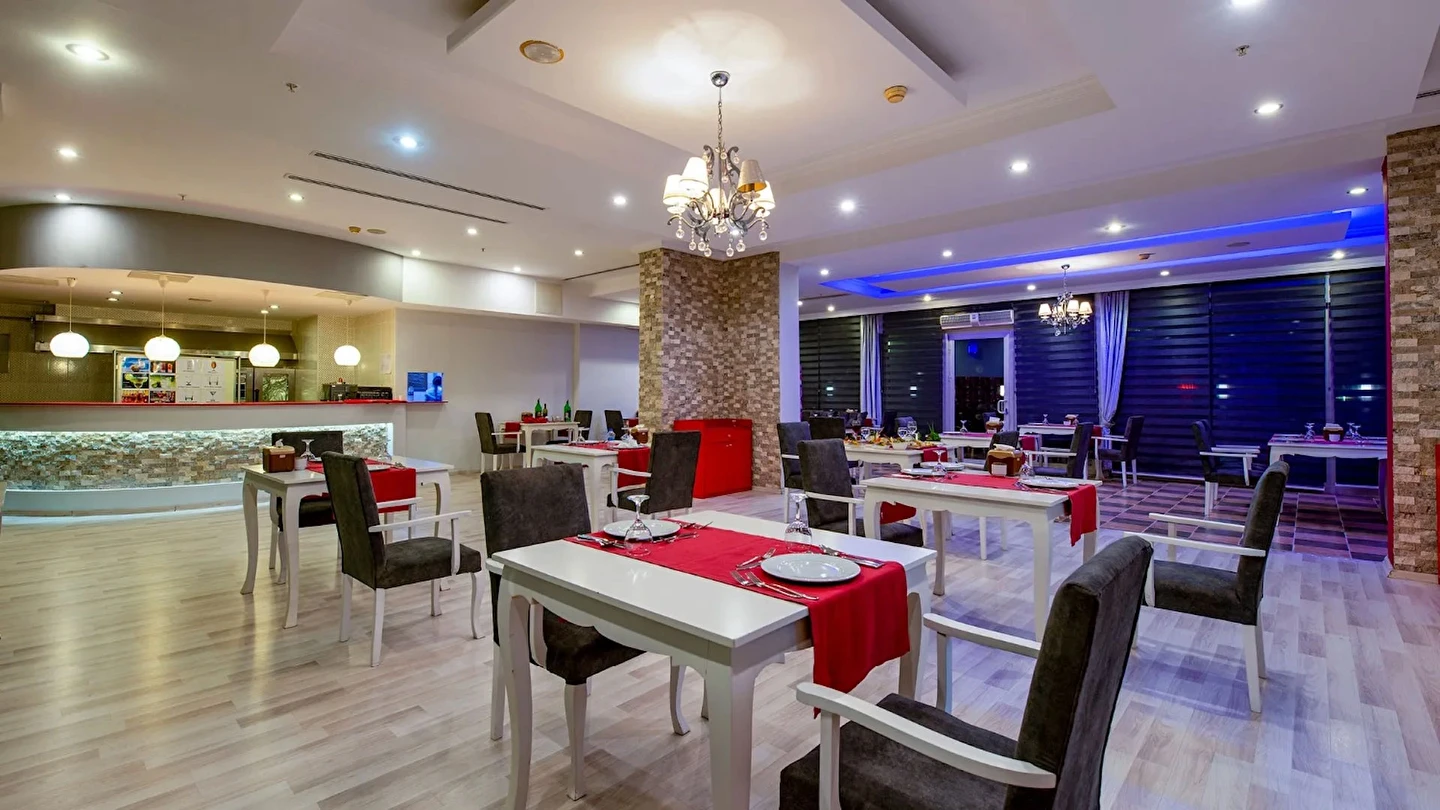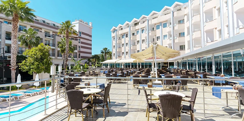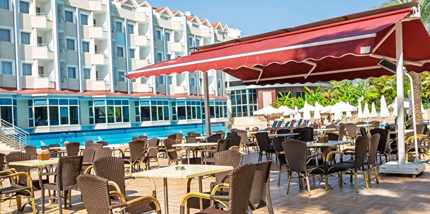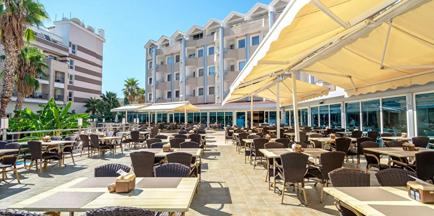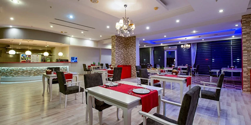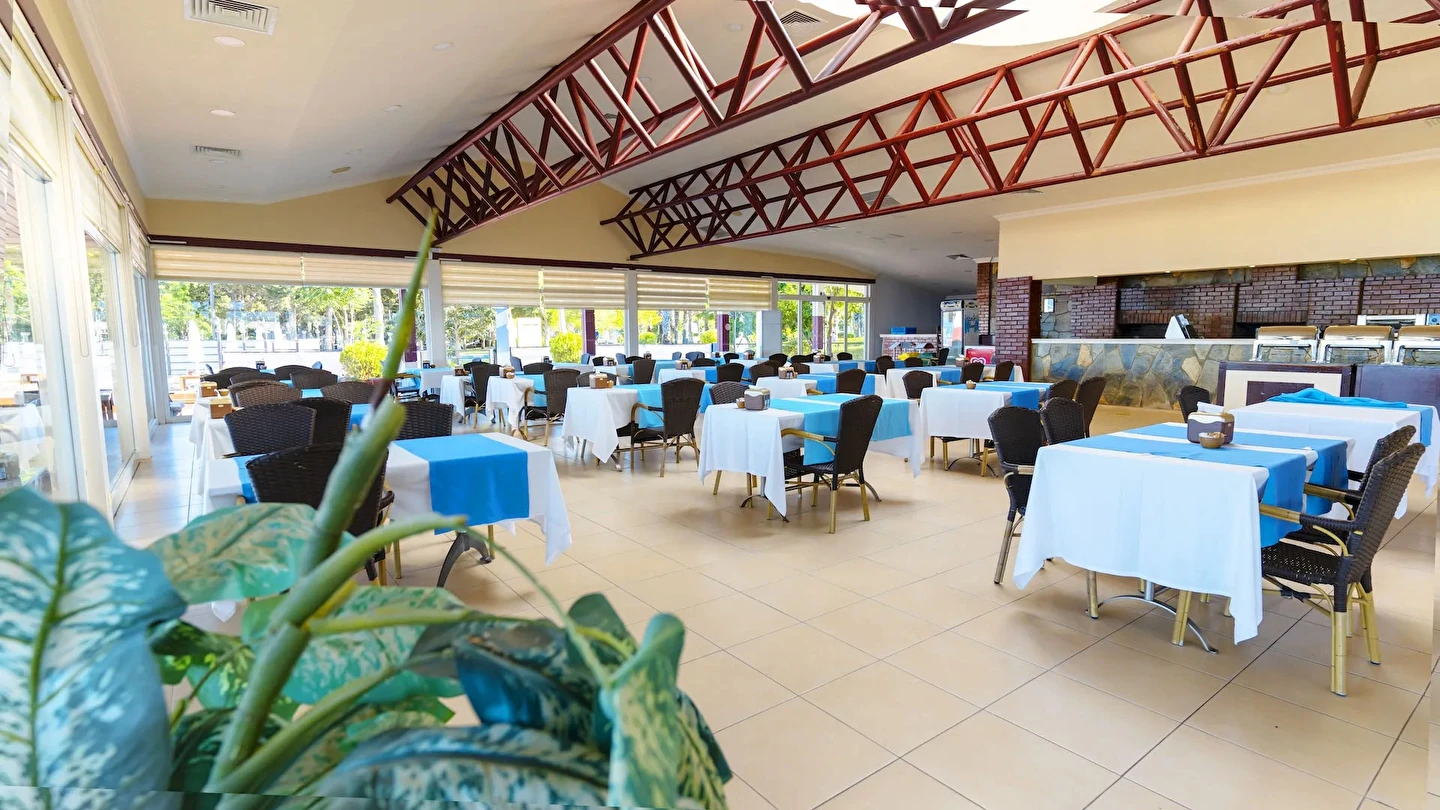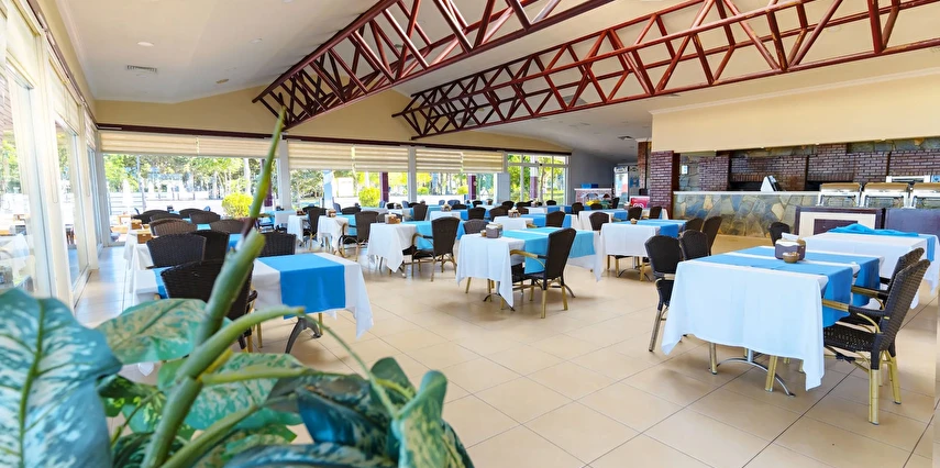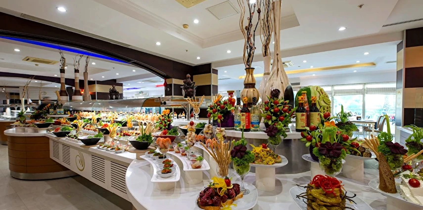 Sabah kahvaltısı, öğle ve akşam yemekleri açık büfe olup tesisin belirlediği markalar dahilinde içecekler 10:00 ile 24:00 saatleri arasında ücretsizdir.