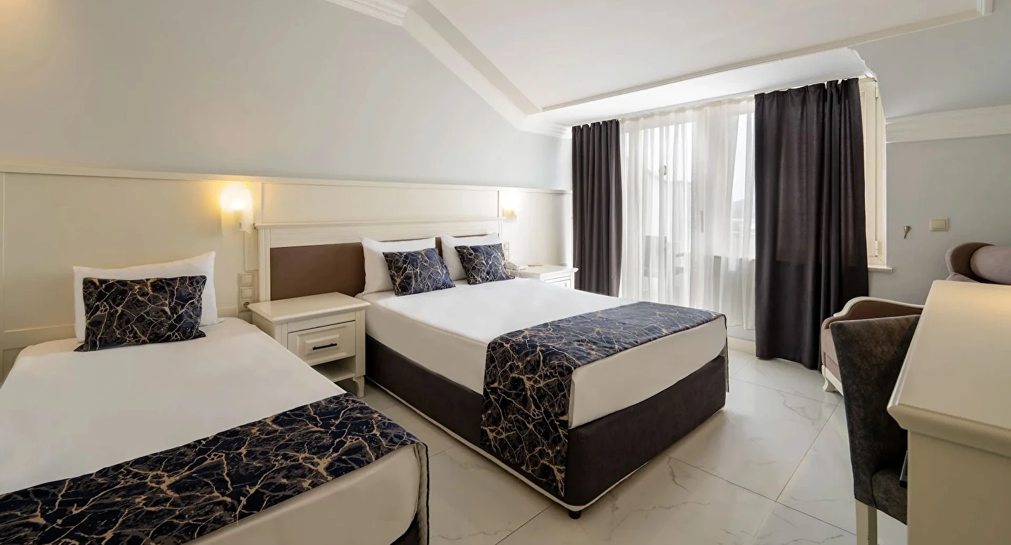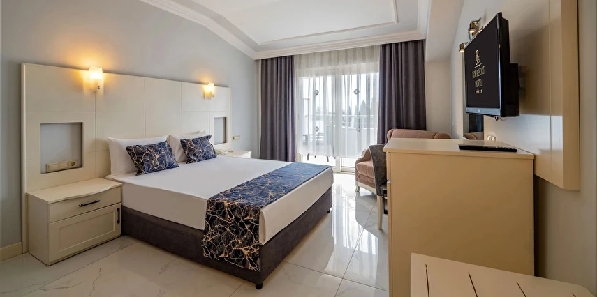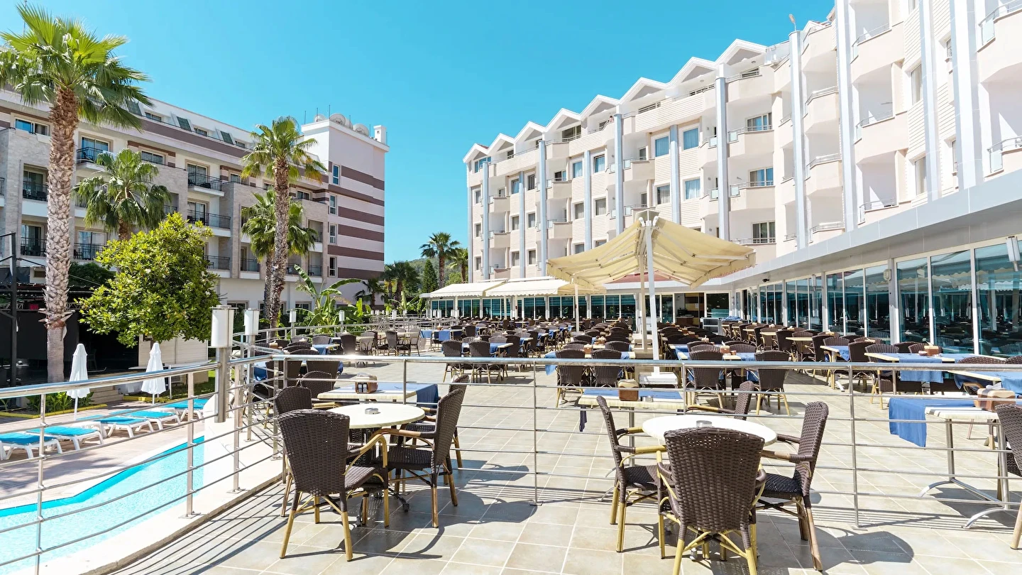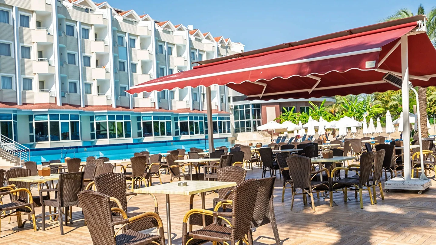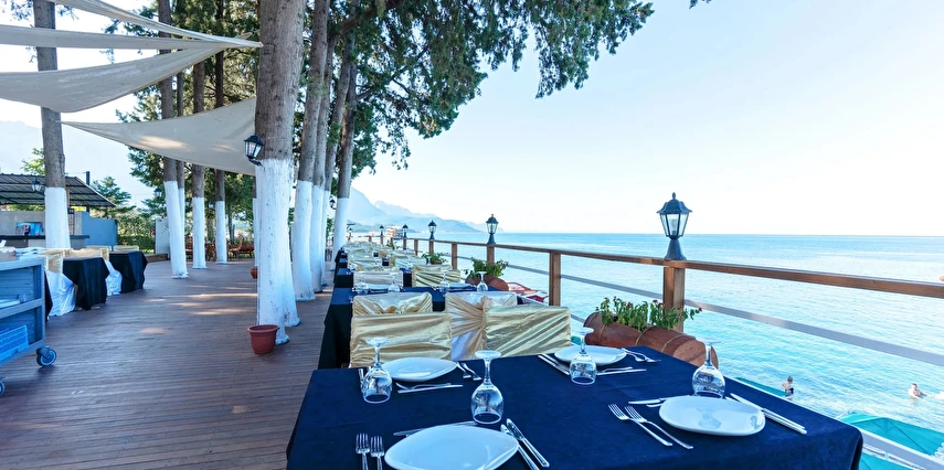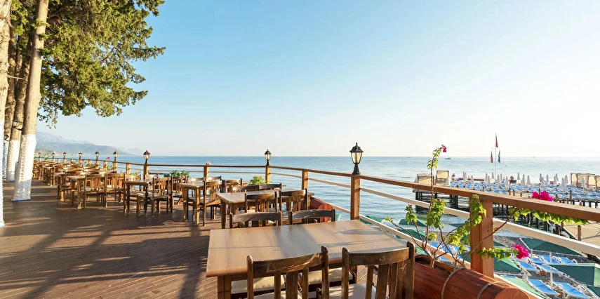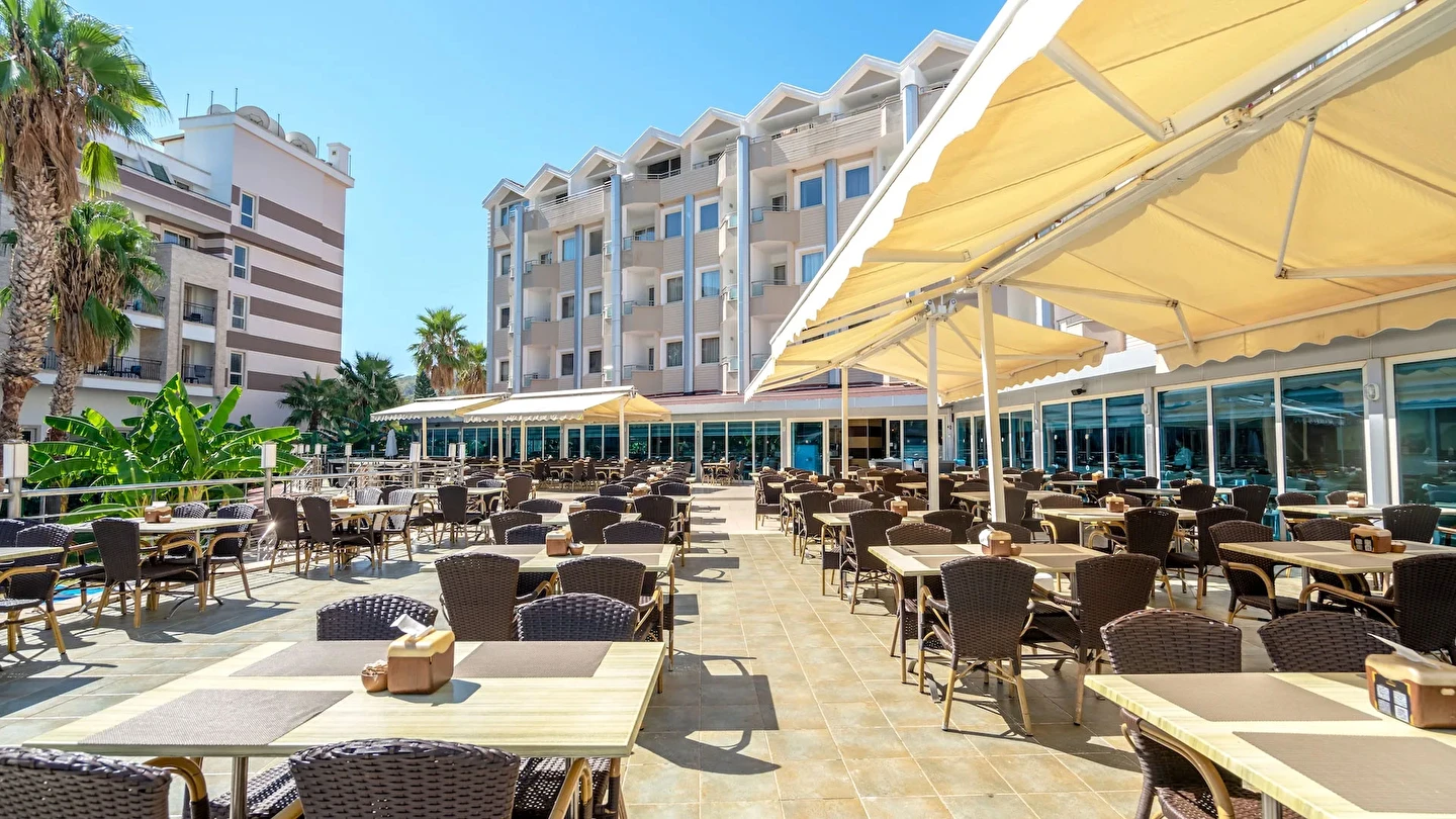 Sabah kahvaltısı, öğle ve akşam yemekleri açık büfe olup tesisin belirlediği markalar dahilinde içecekler 10:00 ile 24:00 saatleri arasında ücretsizdir.