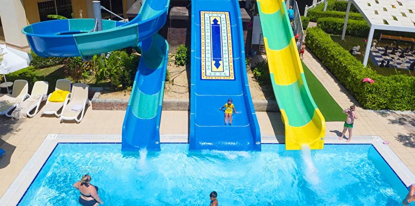 Yetişkinler için 5 bantlı aqua park, çocuklar için 2 bantlı su kaydırağı bulunmaktadır.
