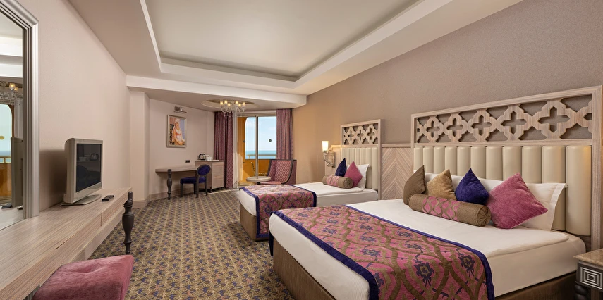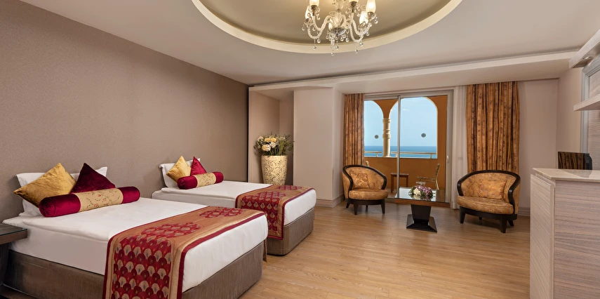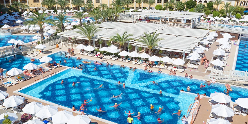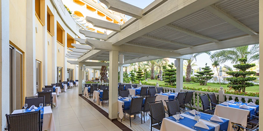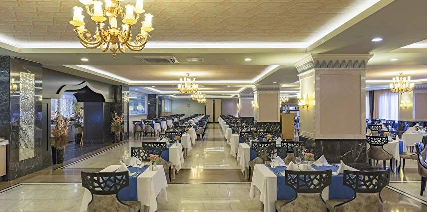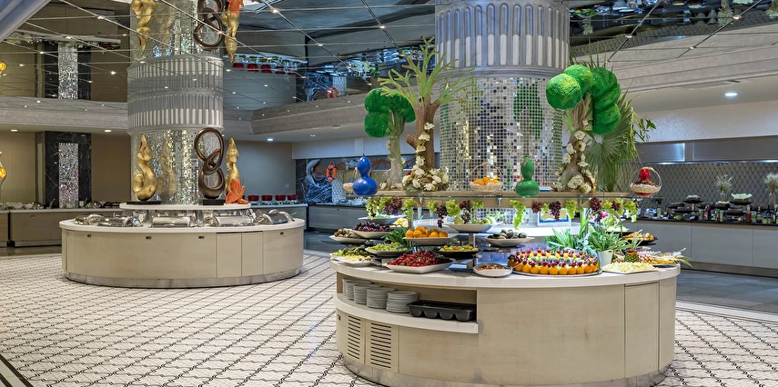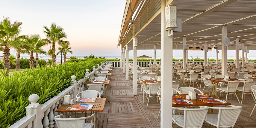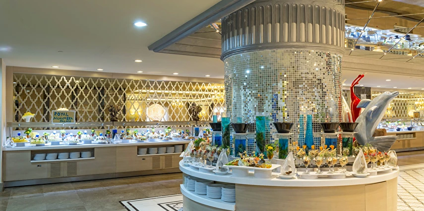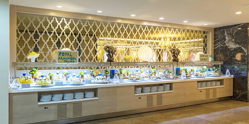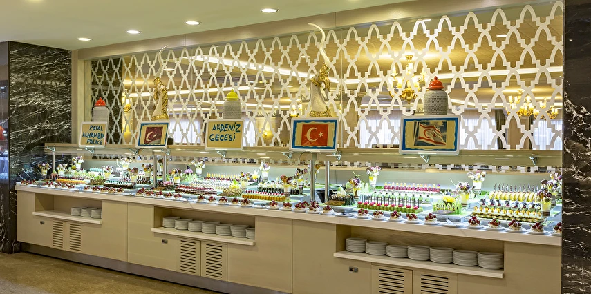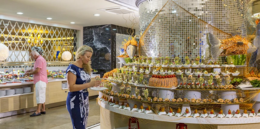 Sabah kahvaltısı öğle ve akşam yemekleri açık büfe olup tesisin belirlemiş olduğu markalar dahilinde 24 yerli alkollü ve alkolsüz içecekler ücretsizdir. Taze sıkılmış meyve ve sebze suları, ithal şampanyalar, tüm özel üretim yerli ve yabancı şaraplar, şişeli talep edilen içkiler, lüks içecekler (12 yıl ve üzeri viskiler, Konyak VSOP/XO), özel üretim yerli ve yabancı şaraplar ücretli sunulmaktadır.