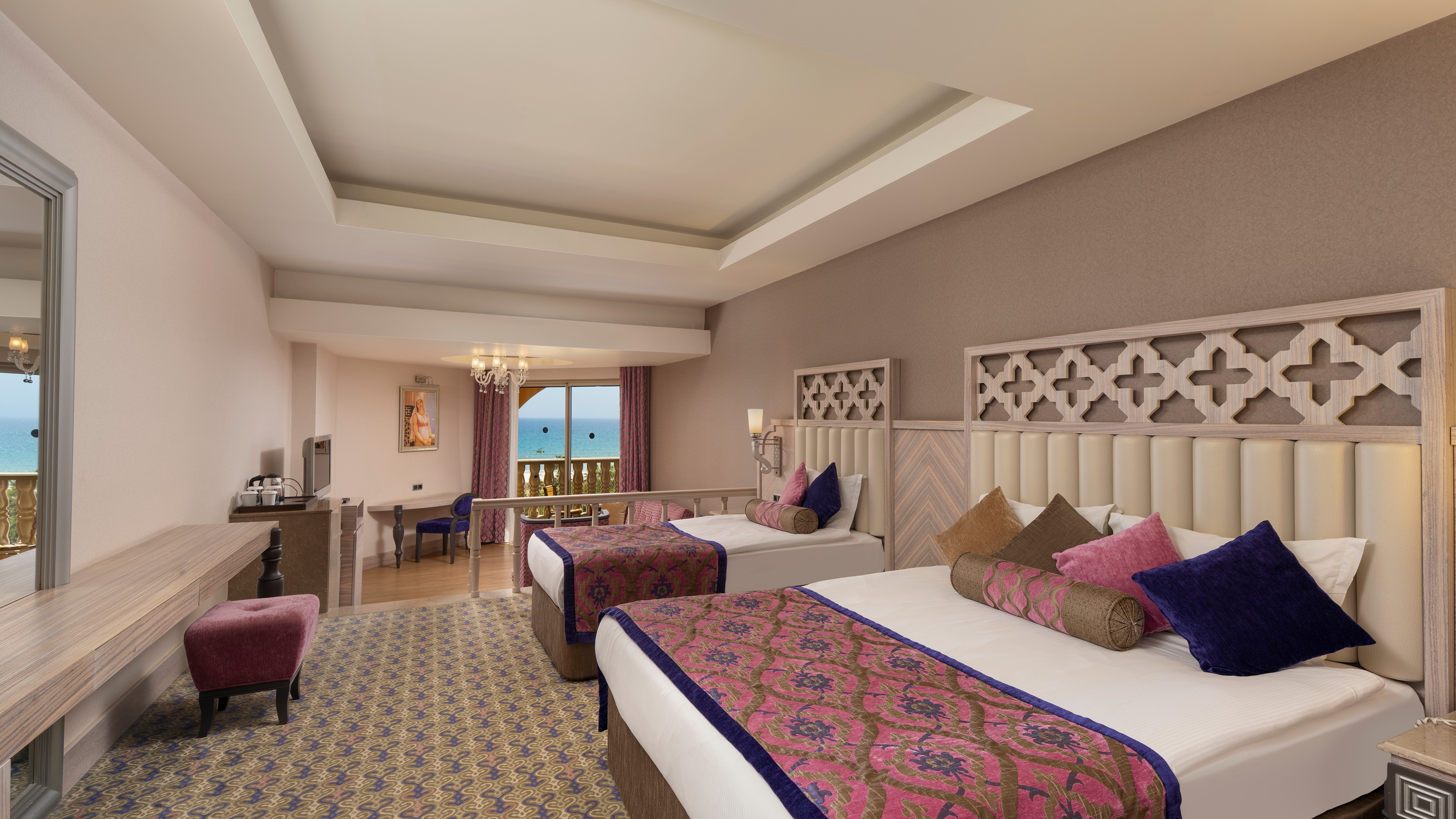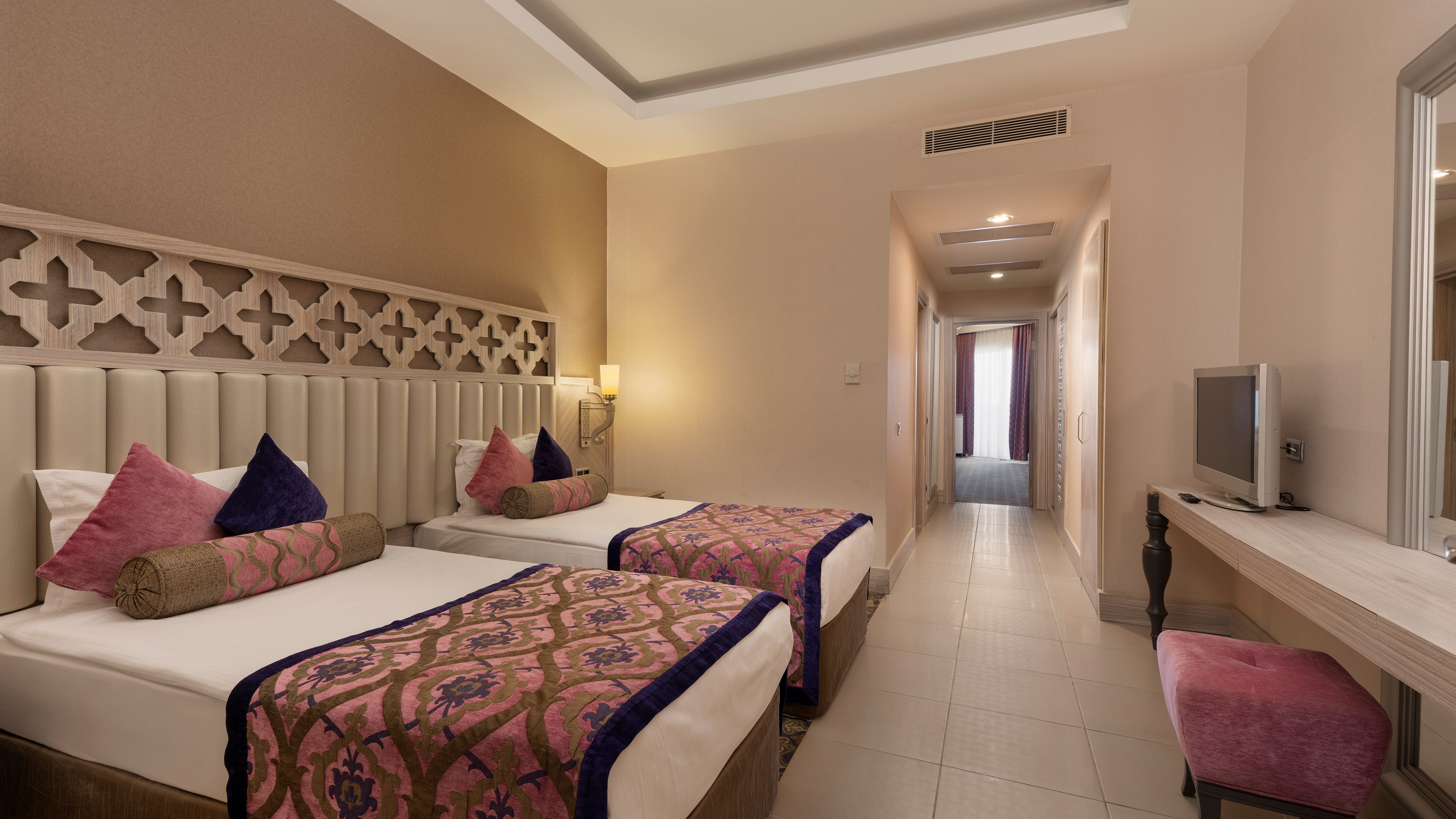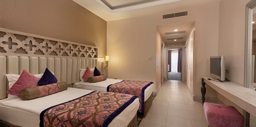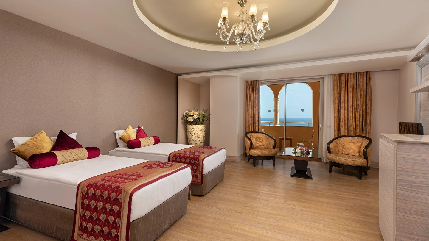 Sabah kahvaltısı öğle ve akşam yemekleri açık büfe olup tesisin belirlemiş olduğu markalar dahilinde 24 yerli alkollü ve alkolsüz içecekler ücretsizdir. Taze sıkılmış meyve ve sebze suları, ithal şampanyalar, tüm özel üretim yerli ve yabancı şaraplar, şişeli talep edilen içkiler, lüks içecekler (12 yıl ve üzeri viskiler, Konyak VSOP/XO), özel üretim yerli ve yabancı şaraplar ücretli sunulmaktadır.