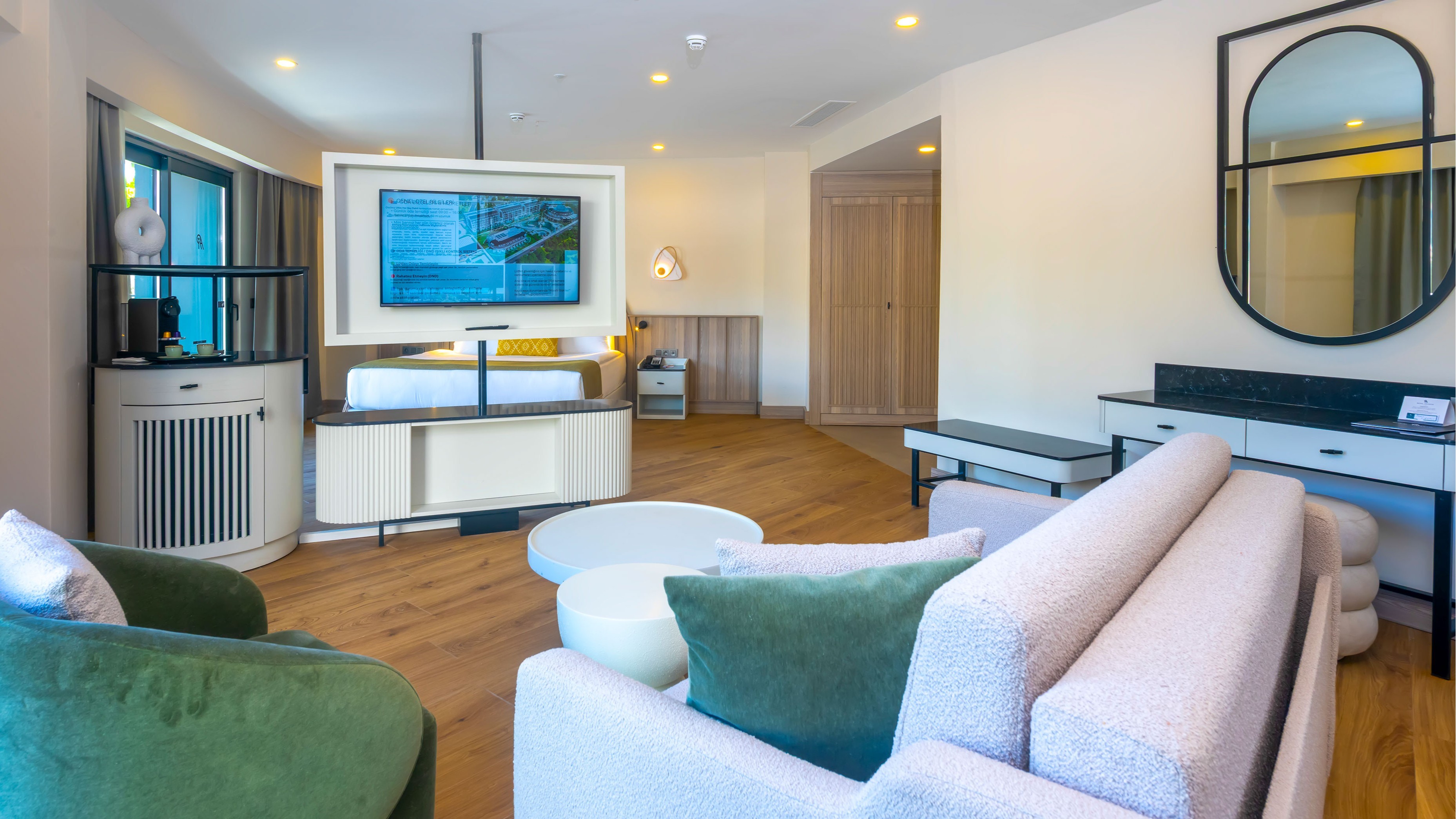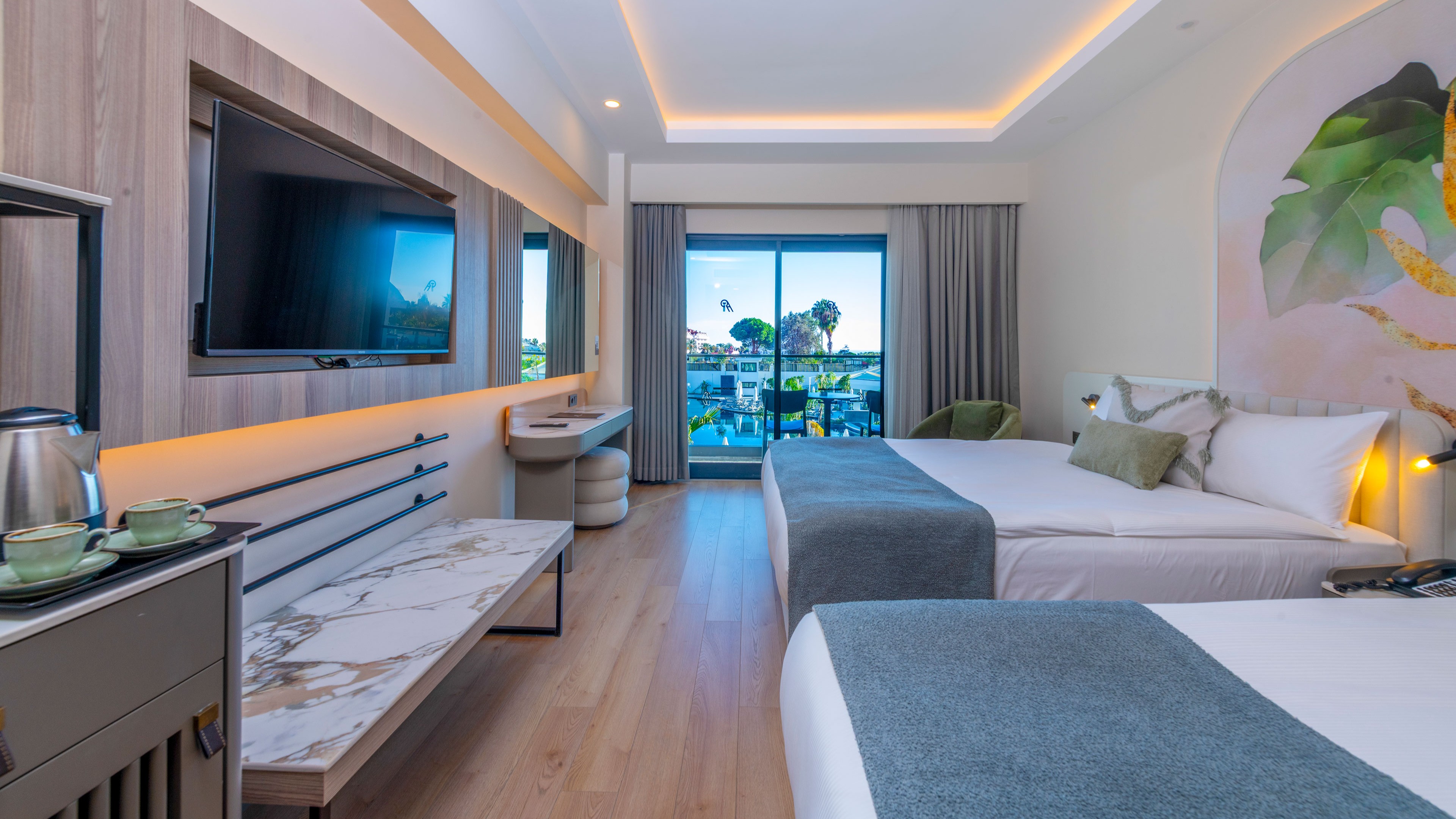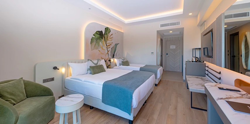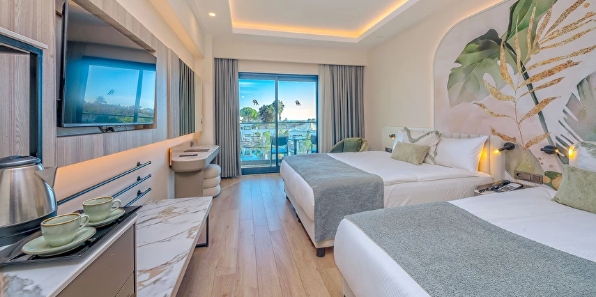 Sabah kahvaltısı, öğle ve akşam yemekleri açık büfe olup, tesisin belirlemiş olduğu saatler ve markalar dahilinde yerli alkollü ve alkolsüz içecekler 24 saat ücretsizdir.