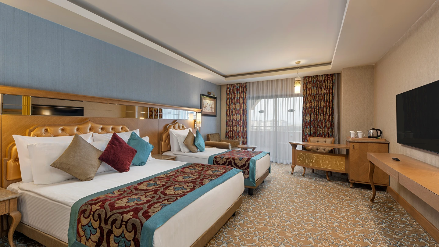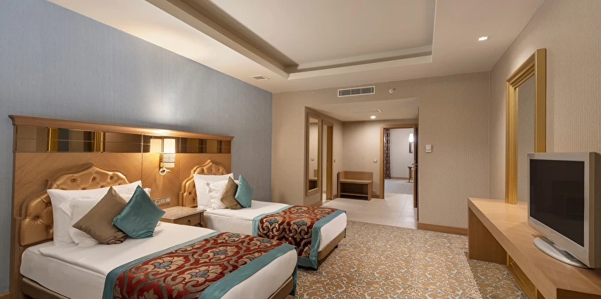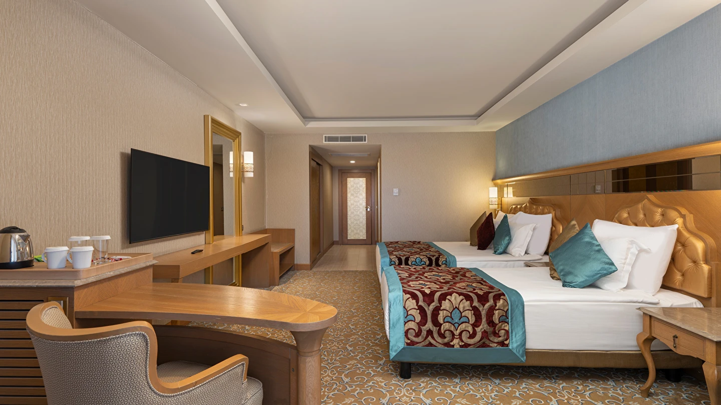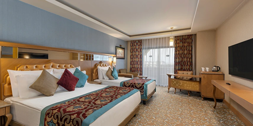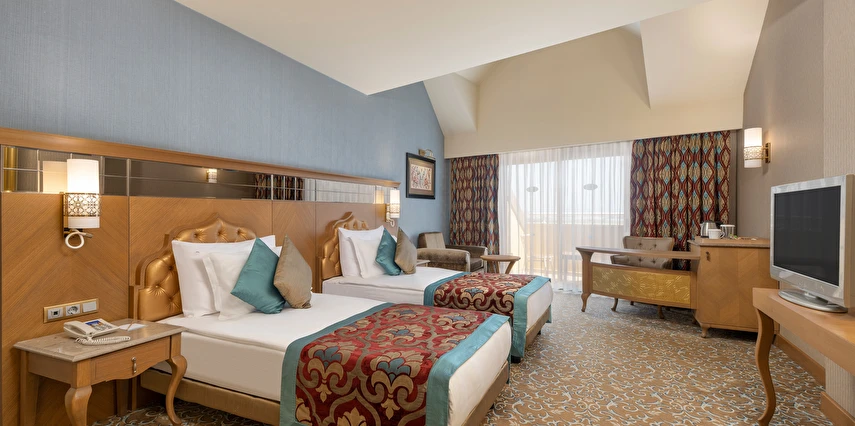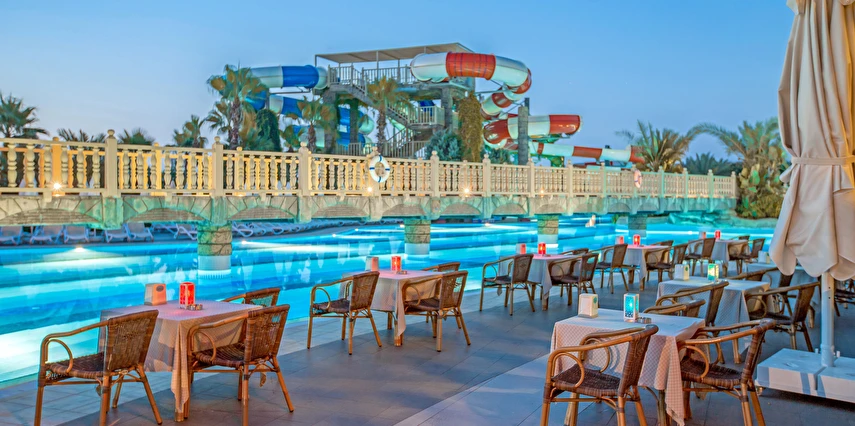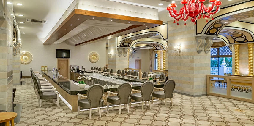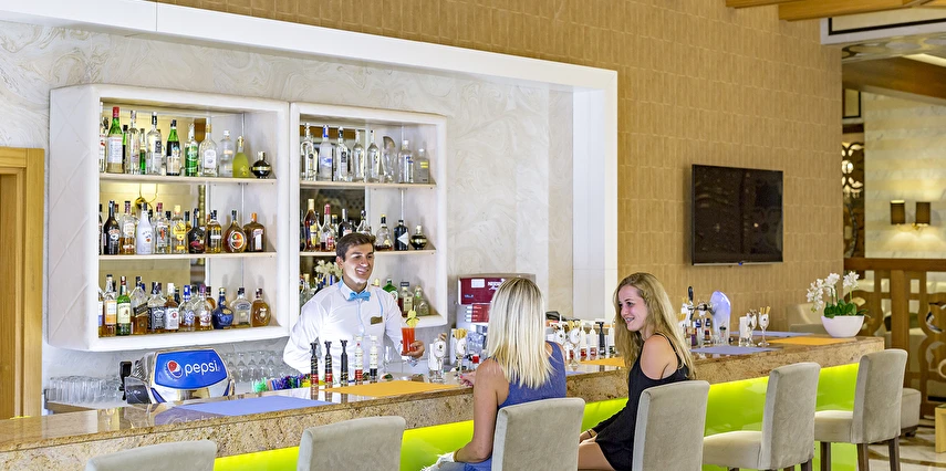 Öğle ve akşam yemeklerinde yerli ve bazı ithal alkollü-alkolsüz içecekler(barların servis verdiği saatler arasında) ücretsizdir.