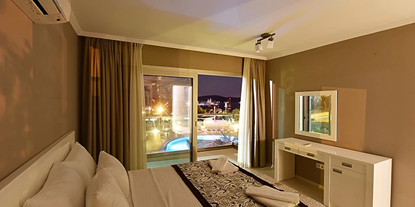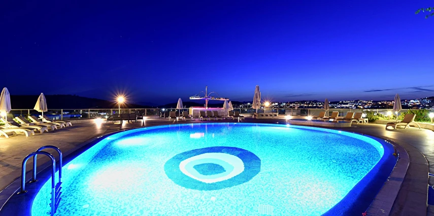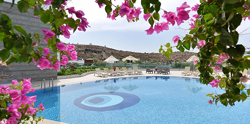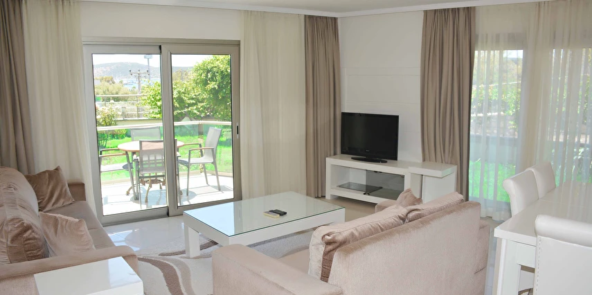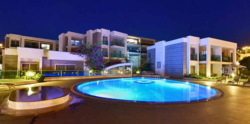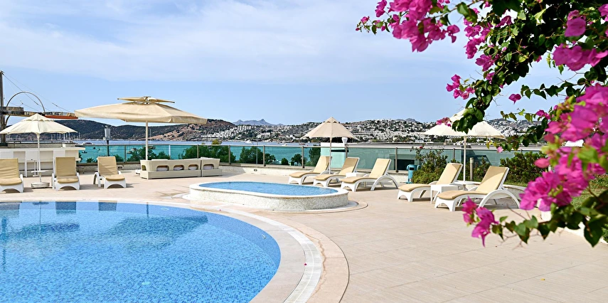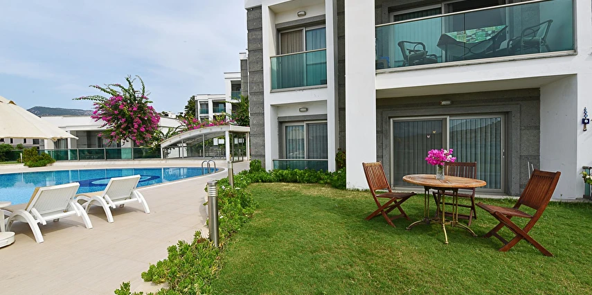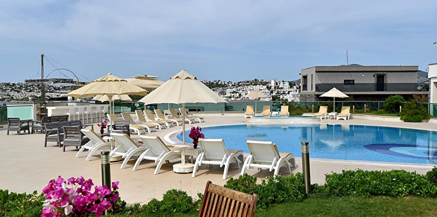 Açık yüzme havuzu, güneşlenme alanları ve peyzajlı bahçe bölümleri tatil boyunca keyifli vakit geçirmenize olanak tanır. Sessiz ve düzenli ortamı sayesinde hem dinlenmek hem de Bodrum’un sosyal hayatını keşfetmek isteyen misafirler için dengeli bir konaklama sunar.