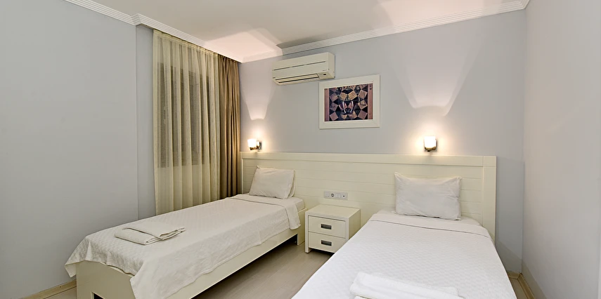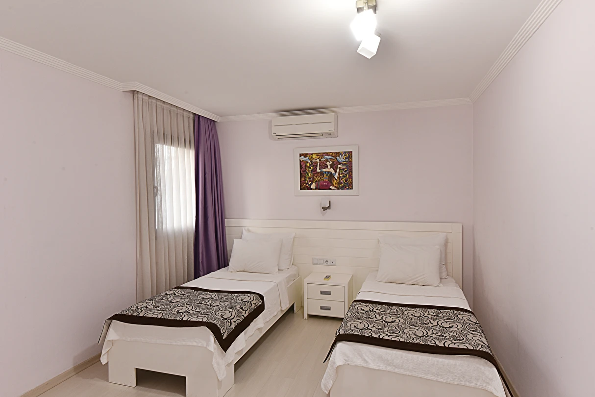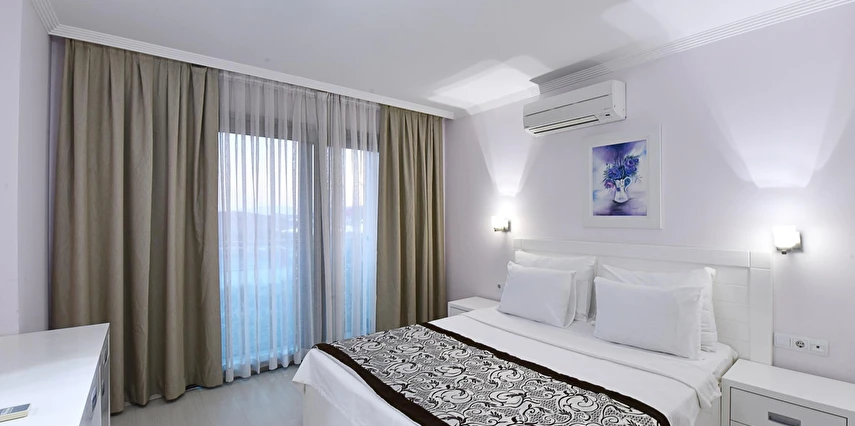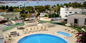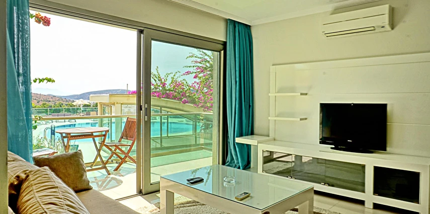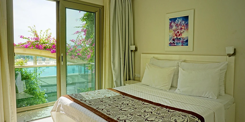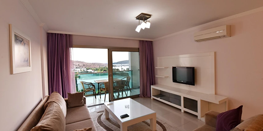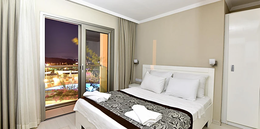 Açık yüzme havuzu, güneşlenme alanları ve peyzajlı bahçe bölümleri tatil boyunca keyifli vakit geçirmenize olanak tanır. Sessiz ve düzenli ortamı sayesinde hem dinlenmek hem de Bodrum’un sosyal hayatını keşfetmek isteyen misafirler için dengeli bir konaklama sunar.