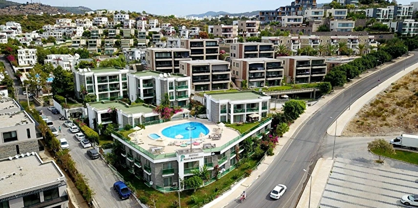 Royal Palm Residence, Bodrum’un seçkin bölgelerinden birinde konumlanan, konforlu ve geniş yaşam alanları sunan rezidans konseptli bir konaklama tesisidir. Hem kısa süreli tatiller hem de uzun dönem konaklamalar için ideal olan tesis, misafirlerine ev rahatlığında bir deneyim sunar.