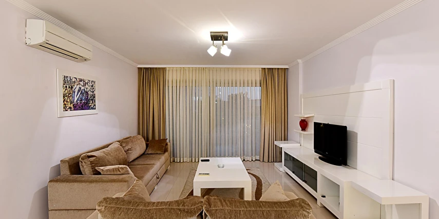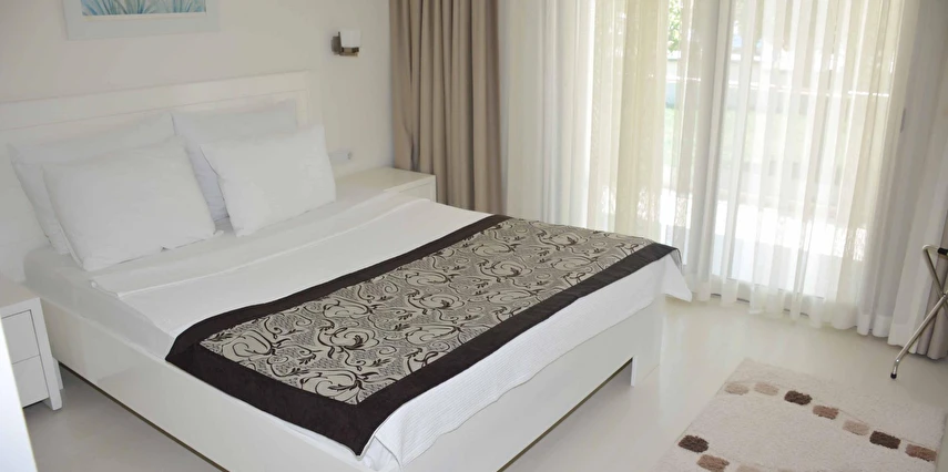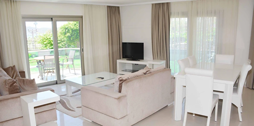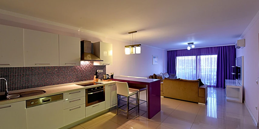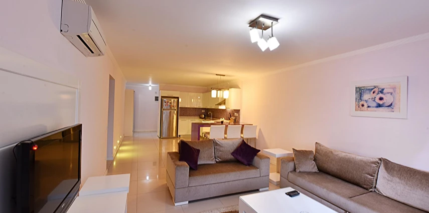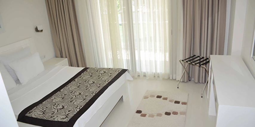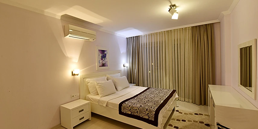 Modern mimarisi ve ferah daireleriyle öne çıkan Royal Palm Residence; konforlu yatak odaları, geniş oturma alanı, donanımlı mutfak, klima, balkon/teras ve ücretsiz Wi-Fi gibi olanaklarla donatılmıştır. Kullanışlı iç tasarımı sayesinde aileler ve arkadaş grupları için rahat bir konaklama imkânı sağlar.