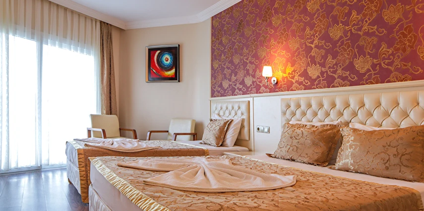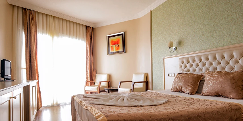 Alkolsüz Her Şey Dahil konseptinde; Sabah kahvaltısı öğle ve akşam yemekleri açık büfe olup tesisin belirlemiş olduğu markalar dahilinde yerli alkolsüz içecekler 10:30 ile 23:00 saatleri arasında ücretsizdir. Taze sıkılmış meyve suları, ithal içecekler, alkollü içecekler, kutu ve şişe tüm içecekler, şampanyalar, özel seri alkollü içecekler, Türk kahvesi ücretlidir.
